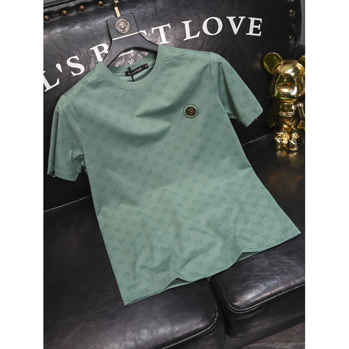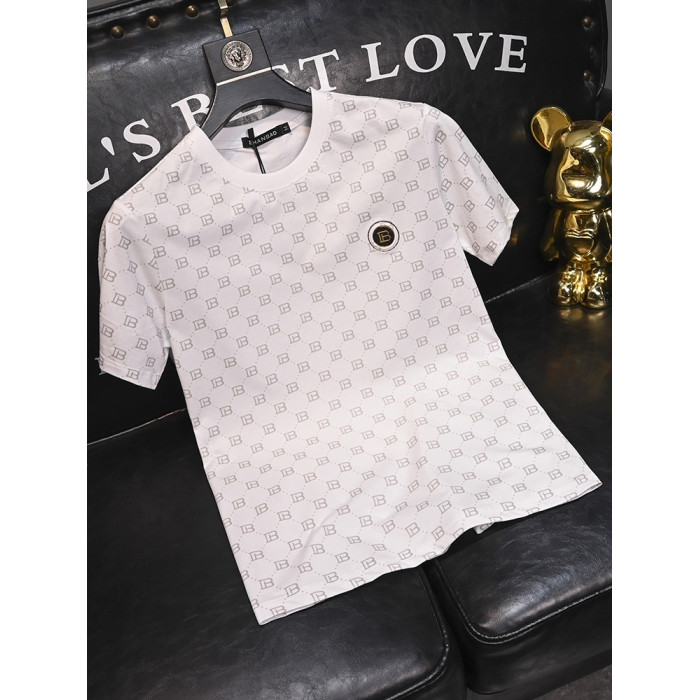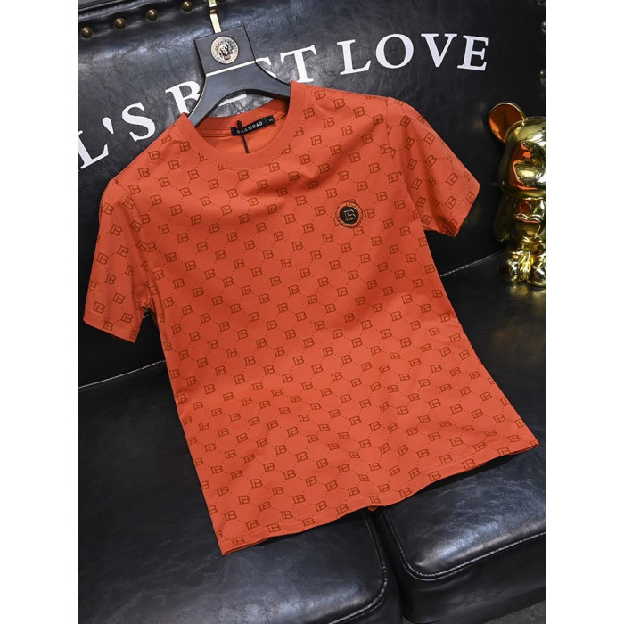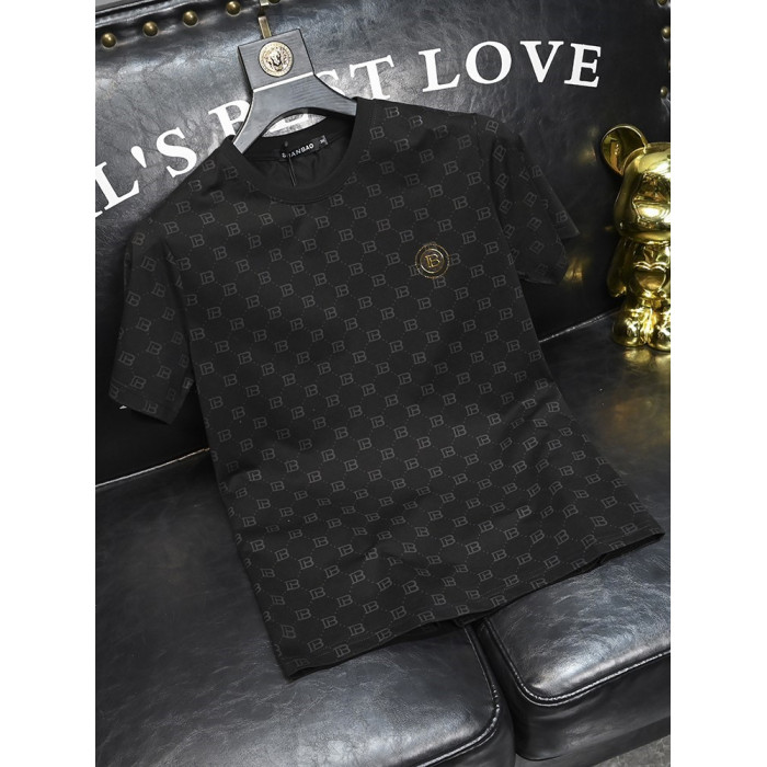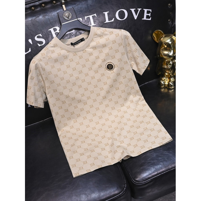 男士修身半袖上衣歐洲站男t恤2025夏季新款高級滿印圓領短袖體恤