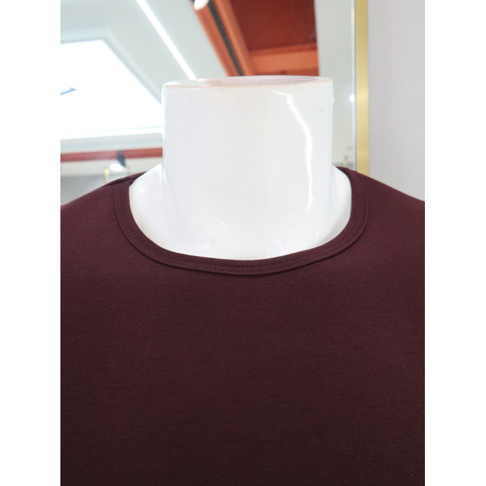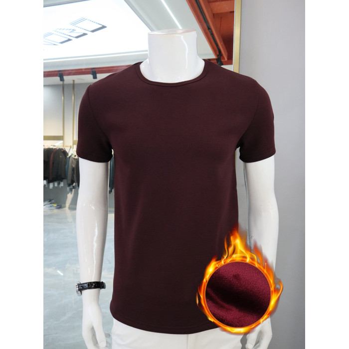 圓領短袖男T恤秋冬保暖內衣修身內搭加絨加厚酒紅色潮流韓版半袖