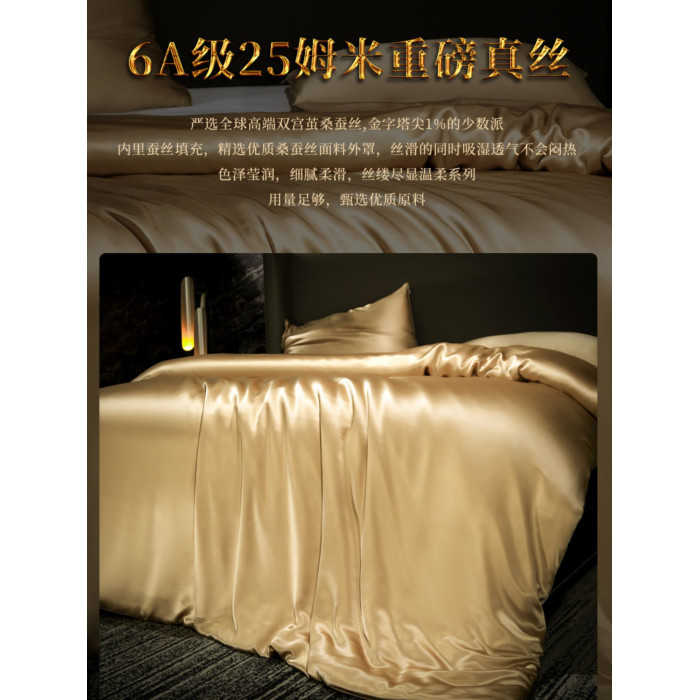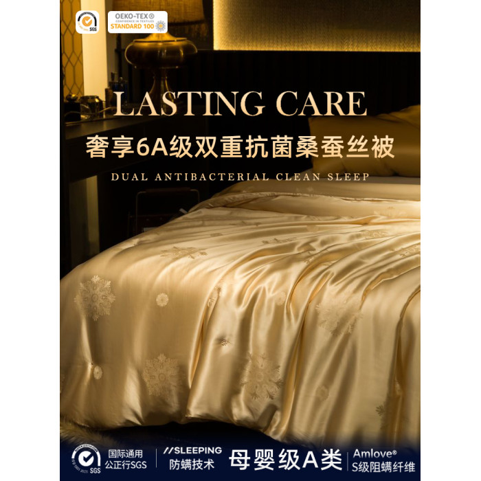 珍稀黃金絲蠶絲被夏被春秋被手工被子被芯100_桑蠶長絲四季子母被