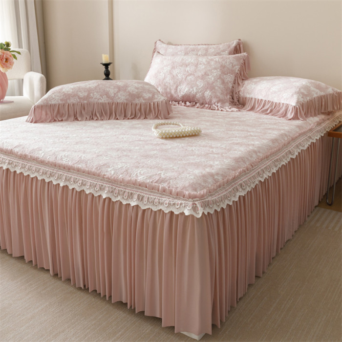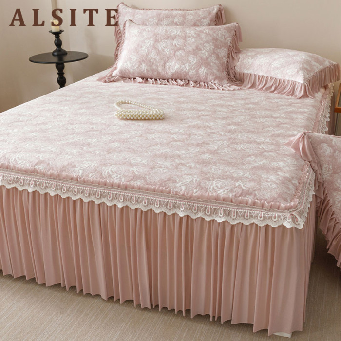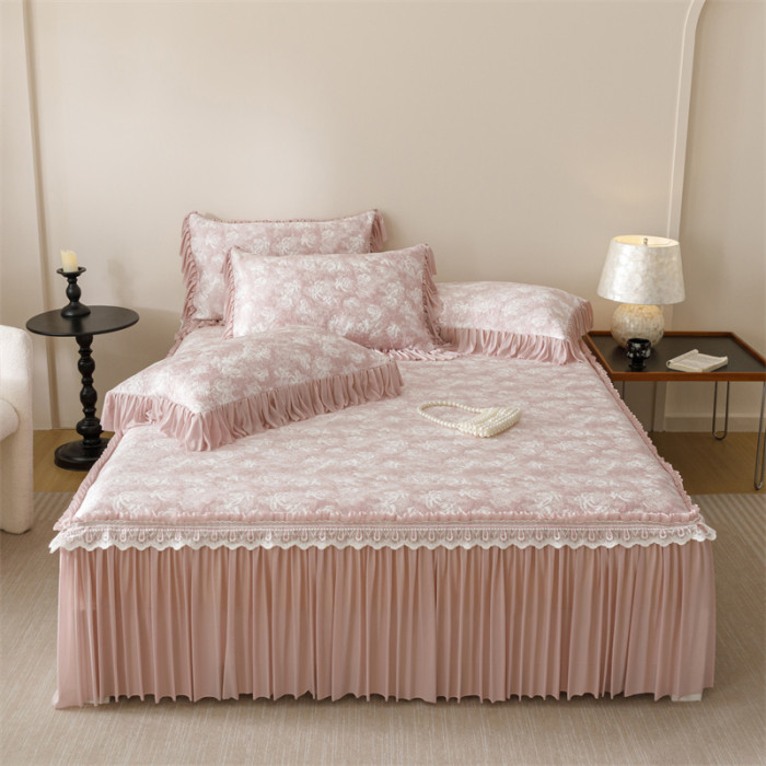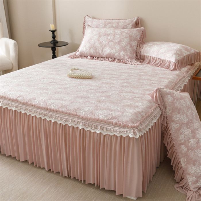 高級夏季海洋絲涼感冰豆豆涼蓆床裙款2025新款提花玫瑰冰絲軟蓆子