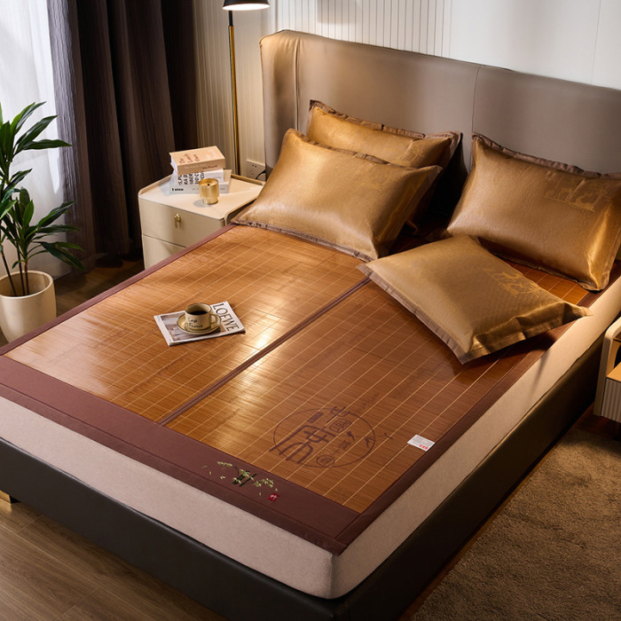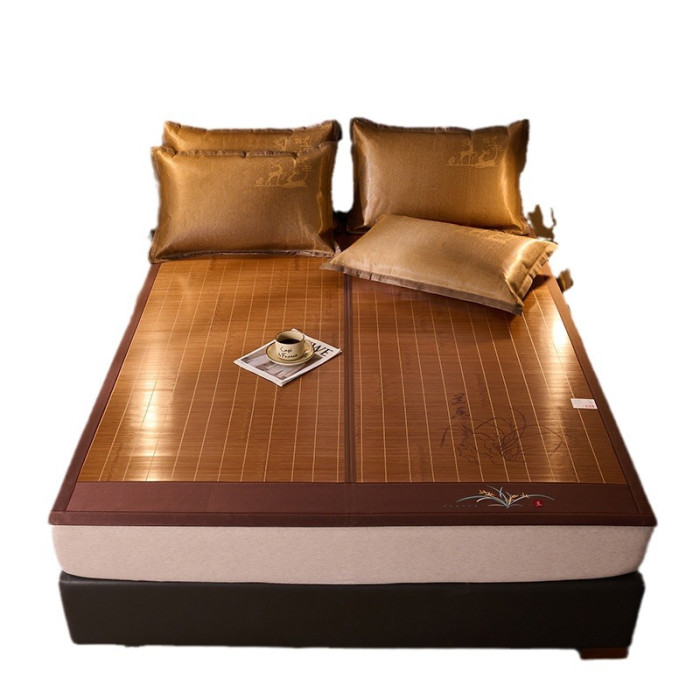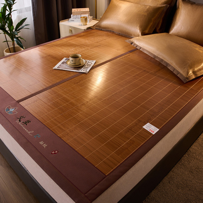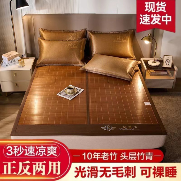 南極人竹涼蓆子鏡面碳化竹蓆雙面可折曡1.8米床雙人藤蓆夏涼蓆蓆