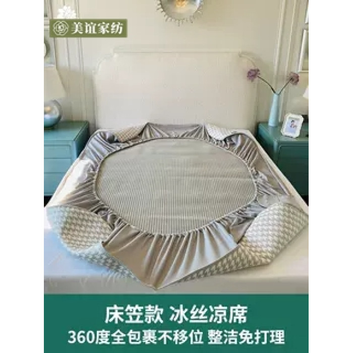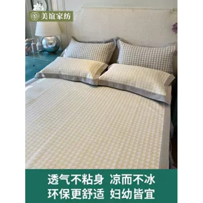 高級養生冰絲涼蓆輕奢千鳥格夏季可水洗可折曡2.0米軟蓆子1.5米床