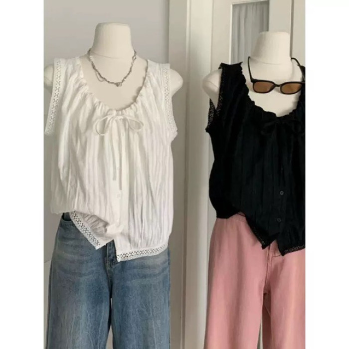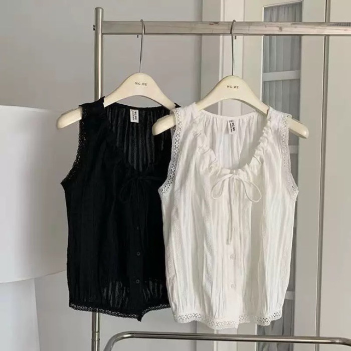 法式浪漫無袖背心吊帶女2025新款春季高級感蕾絲花邊拼接別致上衣