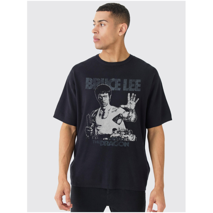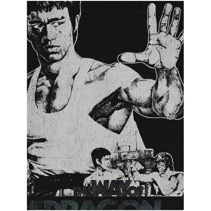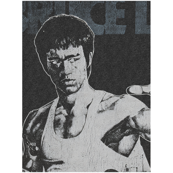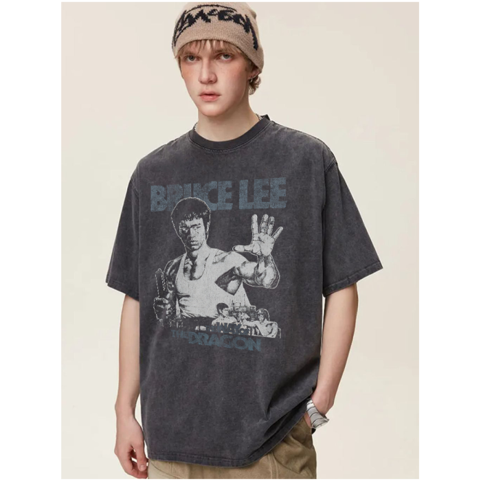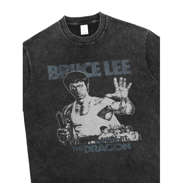 電影猛龍過江李小龍龍爭虎鬭水洗印花做舊復古純棉寬松短袖男T恤U