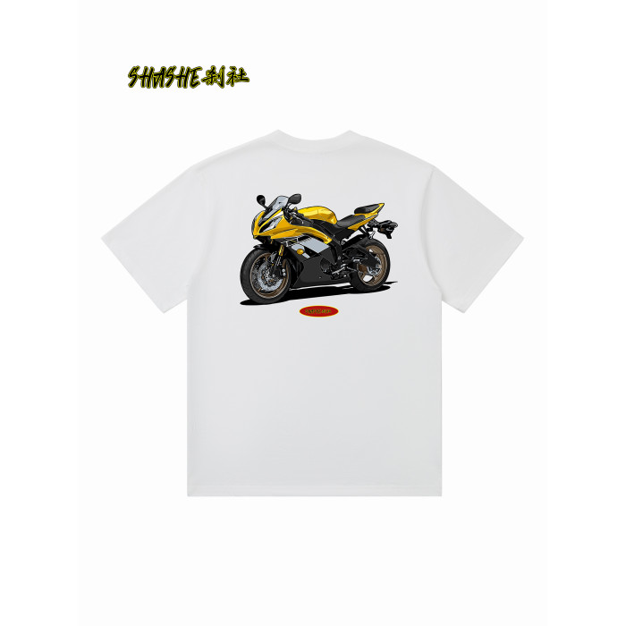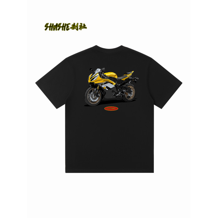 SHASHE刹社 美式潮牌復古摩托機車印花寬松夏季短袖男t恤2025新款