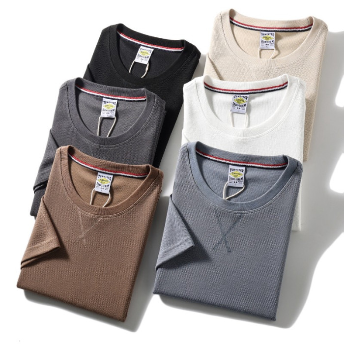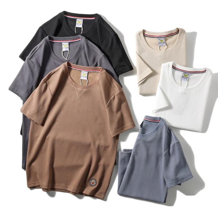 重磅潮牌!夏季珠地棉純色男T恤短袖 百搭休閒寬松情侶t恤半袖