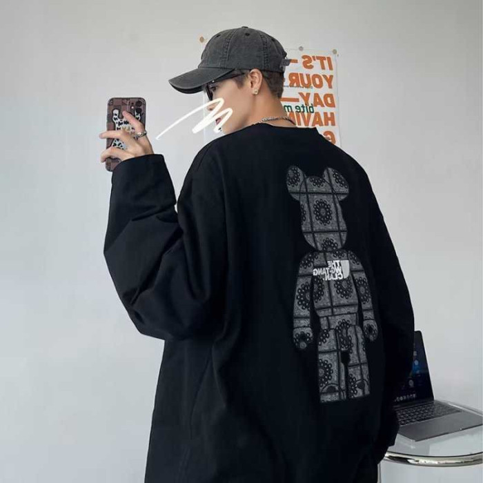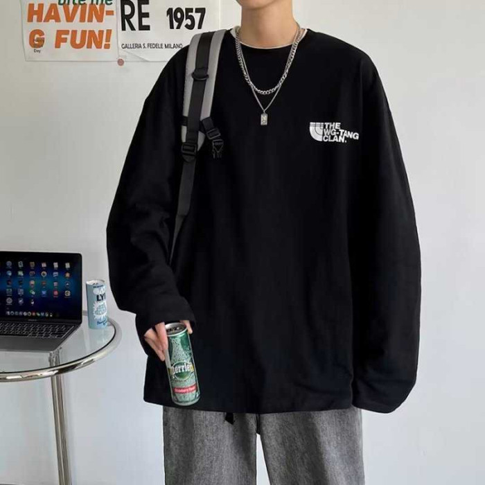 長袖男t恤春秋季潮流百搭潮牌ins男裝春裝2023新款bf寬松嘻哈上衣