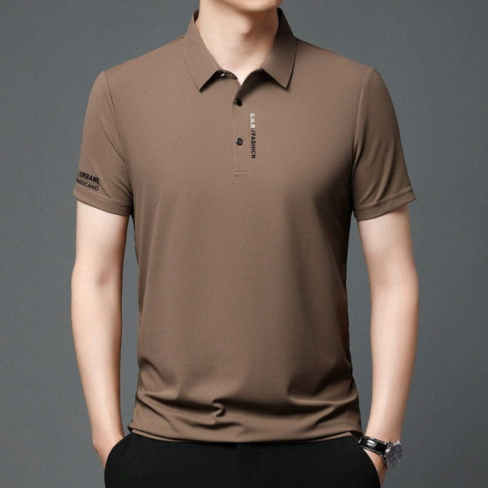 續航2024夏季新款冰絲印花短袖男士polo衫純色商務休閒百搭男t恤