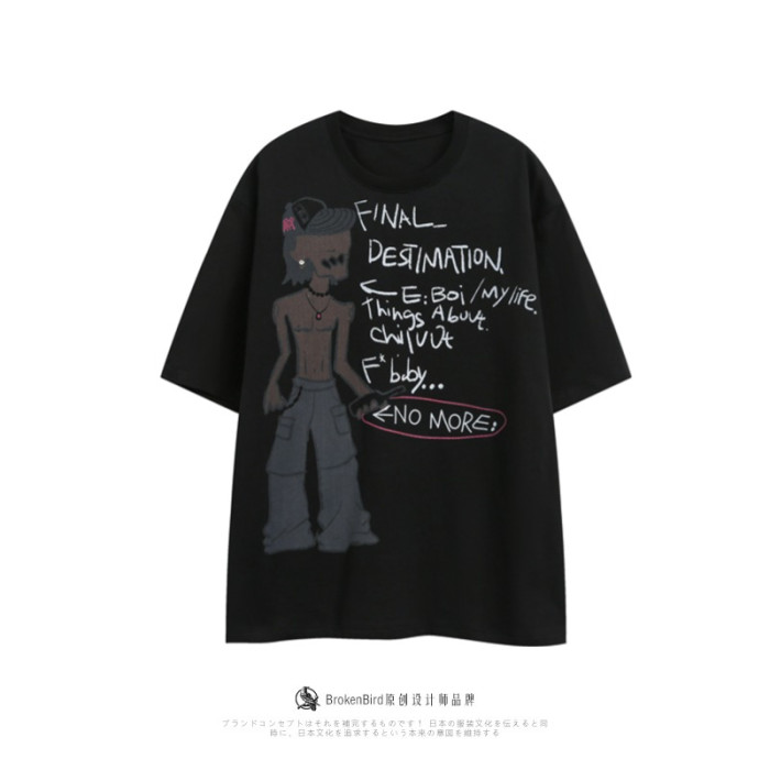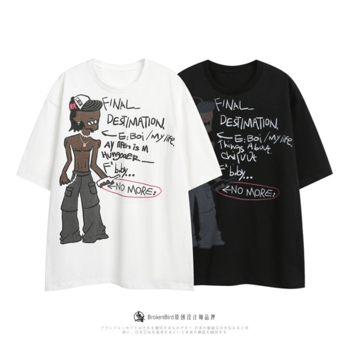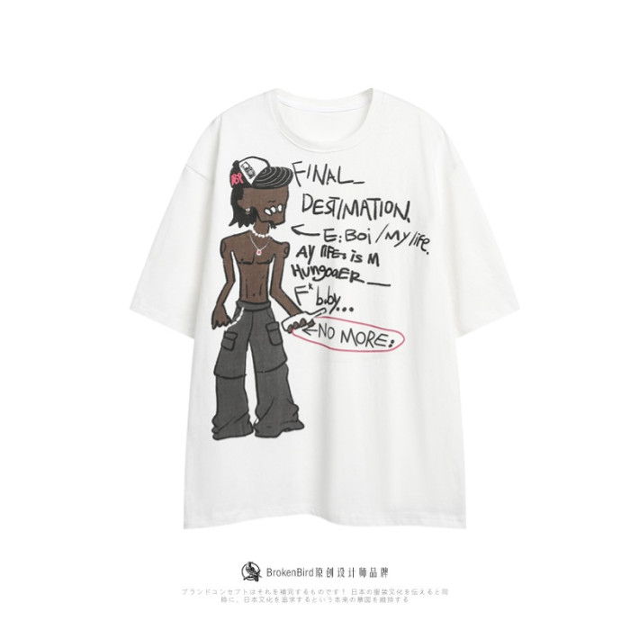 美式嘻哈人物印花短袖男t恤夏季2025新款街頭設計感小衆純棉體恤
