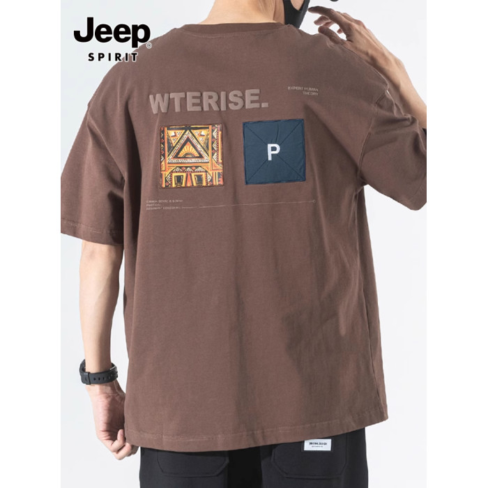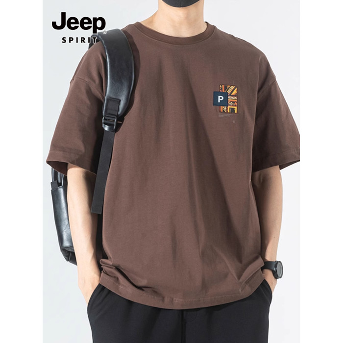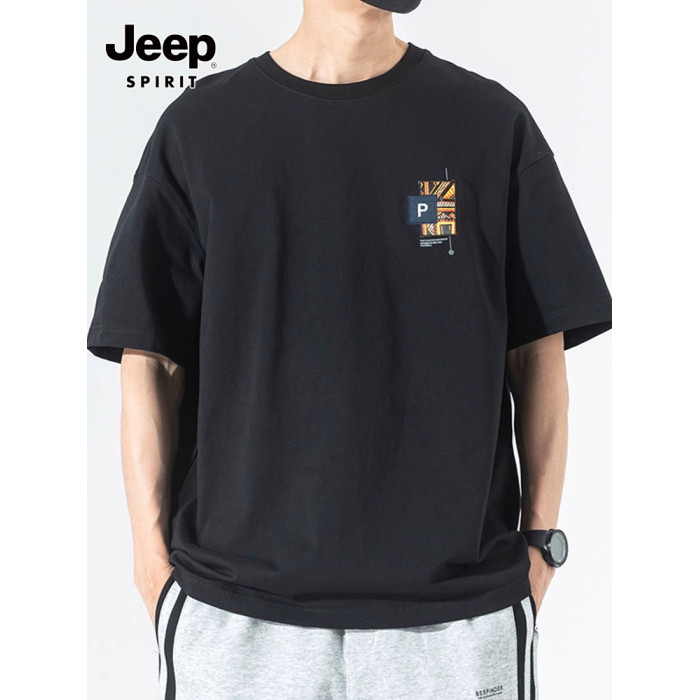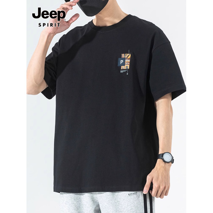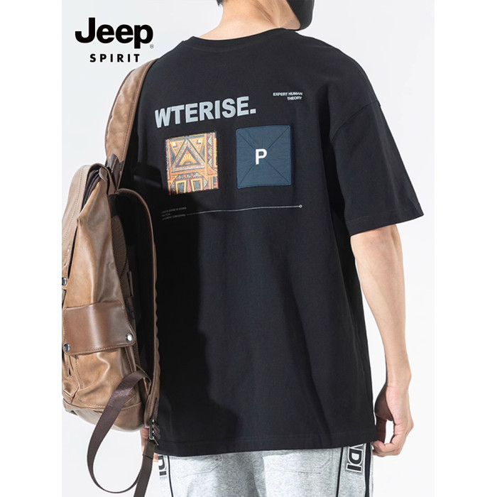 JEEP吉普夏季國潮民族風短袖男t恤純棉寬松大碼潮流薄款百搭上衣