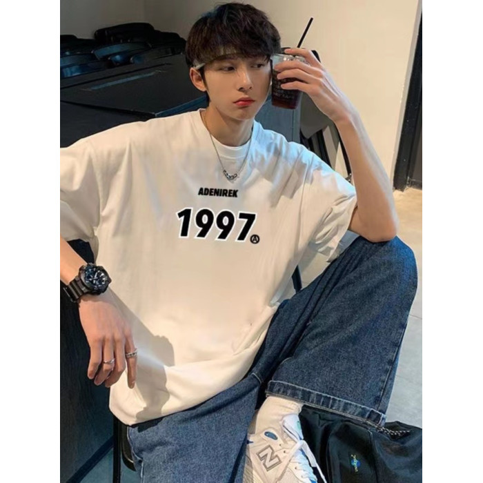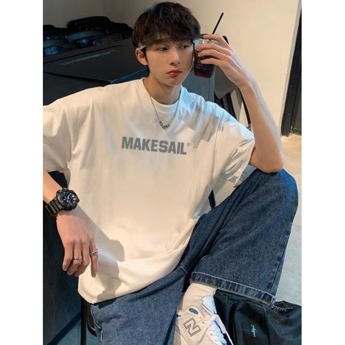 100%重磅純棉大碼男t恤簡約短袖夏季寬松美式正肩港風潮牌ins新款
