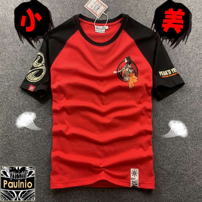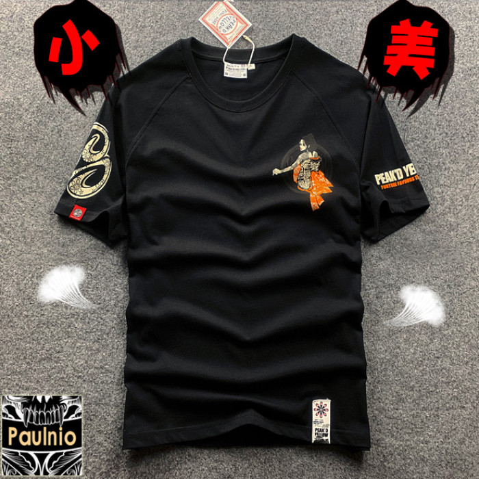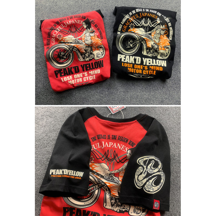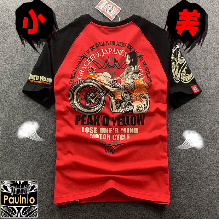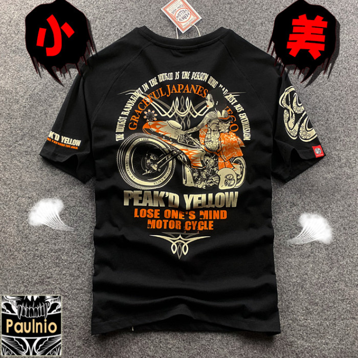 日系潮牌浮世繪哈雷機車紋身港風短袖男t恤 ins情侶純棉半袖T加大