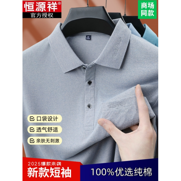 恒源祥純棉短袖POLO衫男T恤中年爸爸裝翻領半袖大碼口袋夏裝上衣