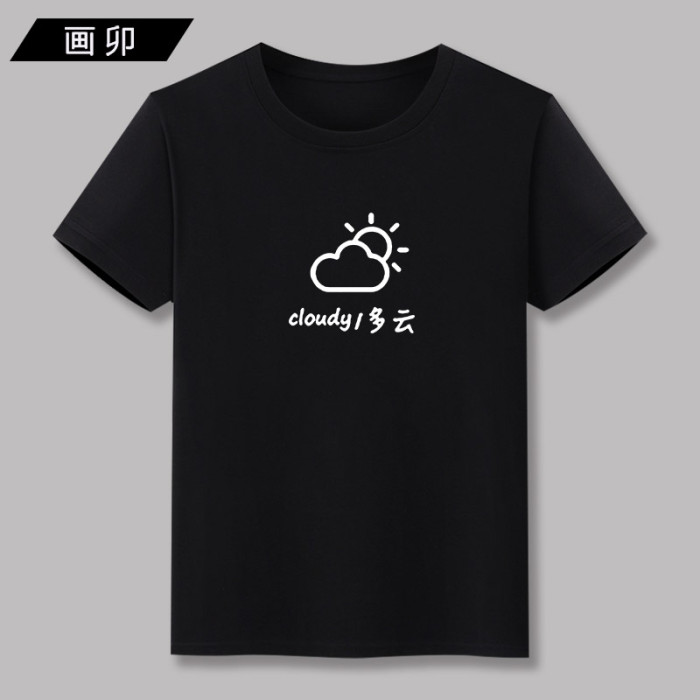 夏季新款創意天氣預報印花短袖男T恤日系情侶學生潮流圓領打底衫