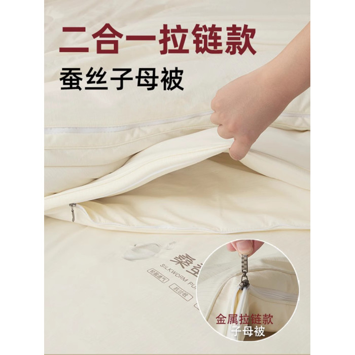 全棉蠶絲棉被子冬被芯秋冬季加厚保暖子母被二合一拉鍊款2024新款