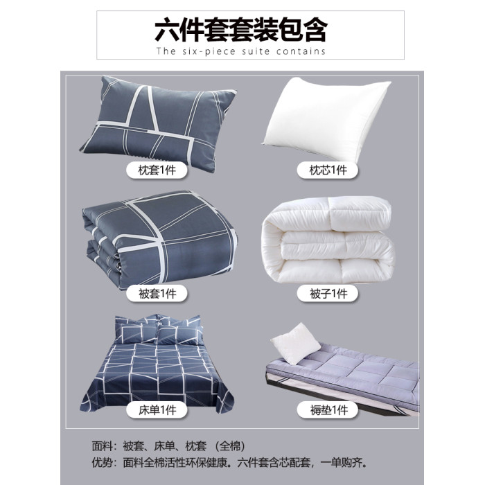 0.9m床(宿捨冬季6件套)被套+床單+枕套+冬被+床墊+枕芯