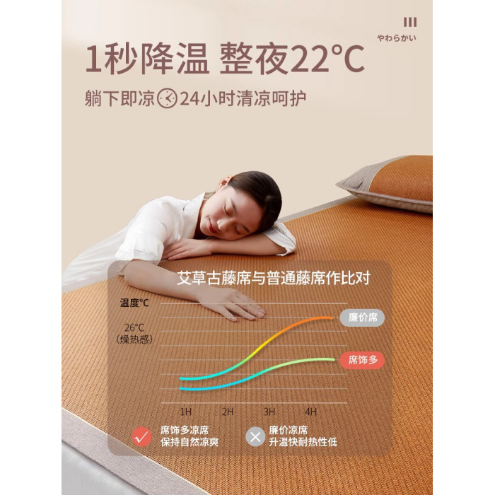 【典雅款】艾草古韻藤蓆(配枕套) 【敺蚊抑菌】
