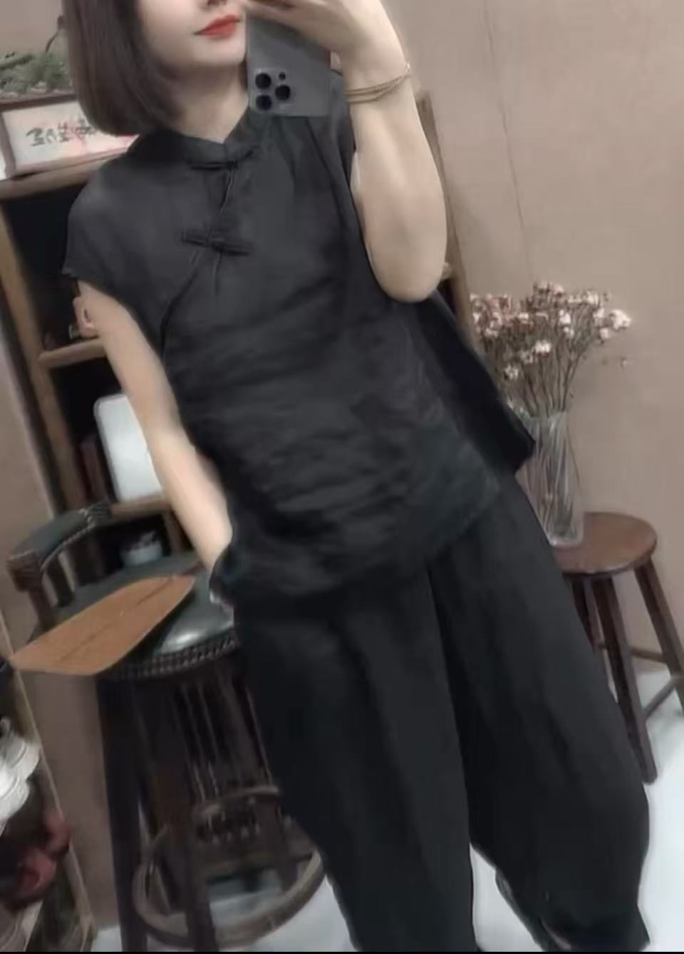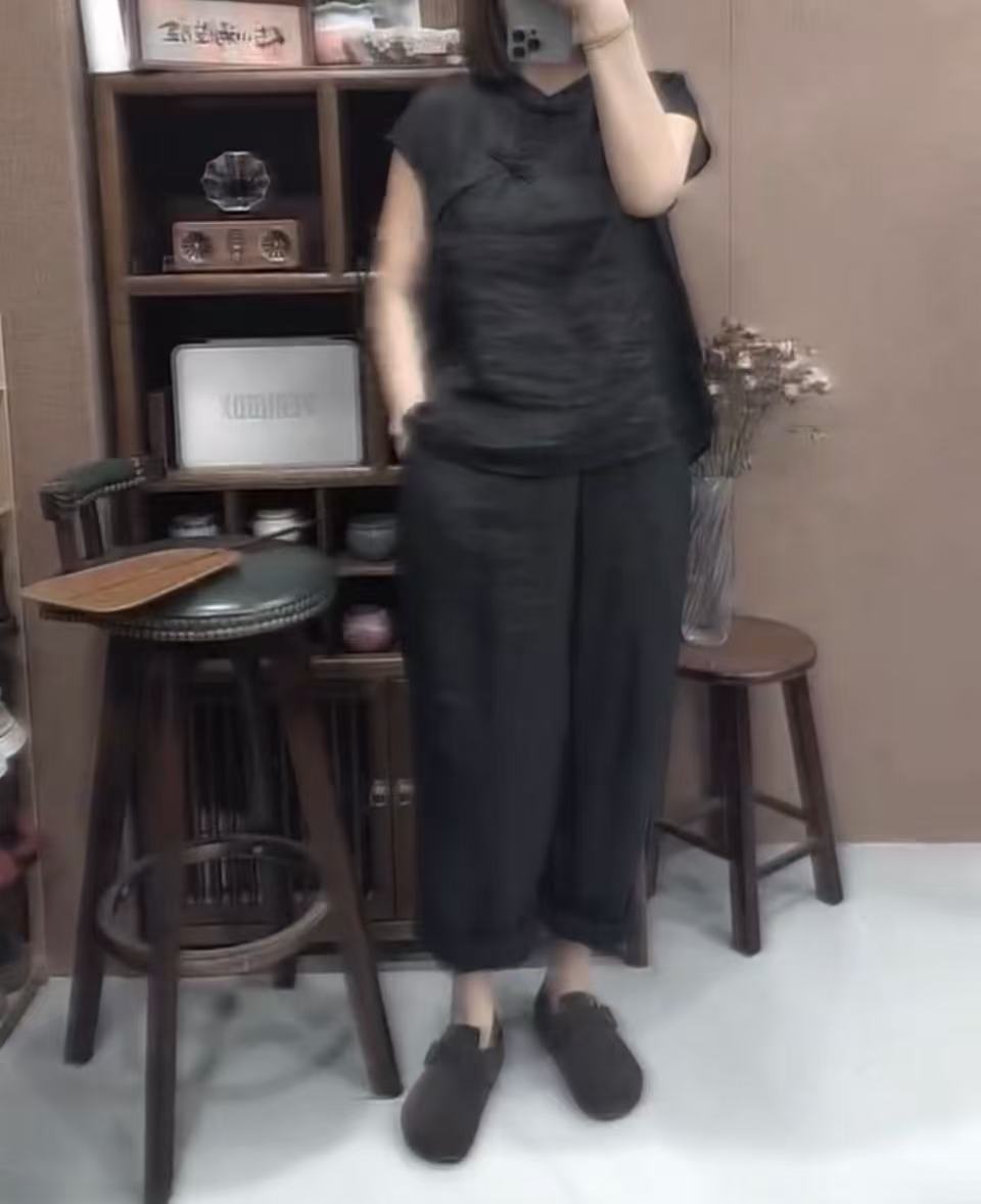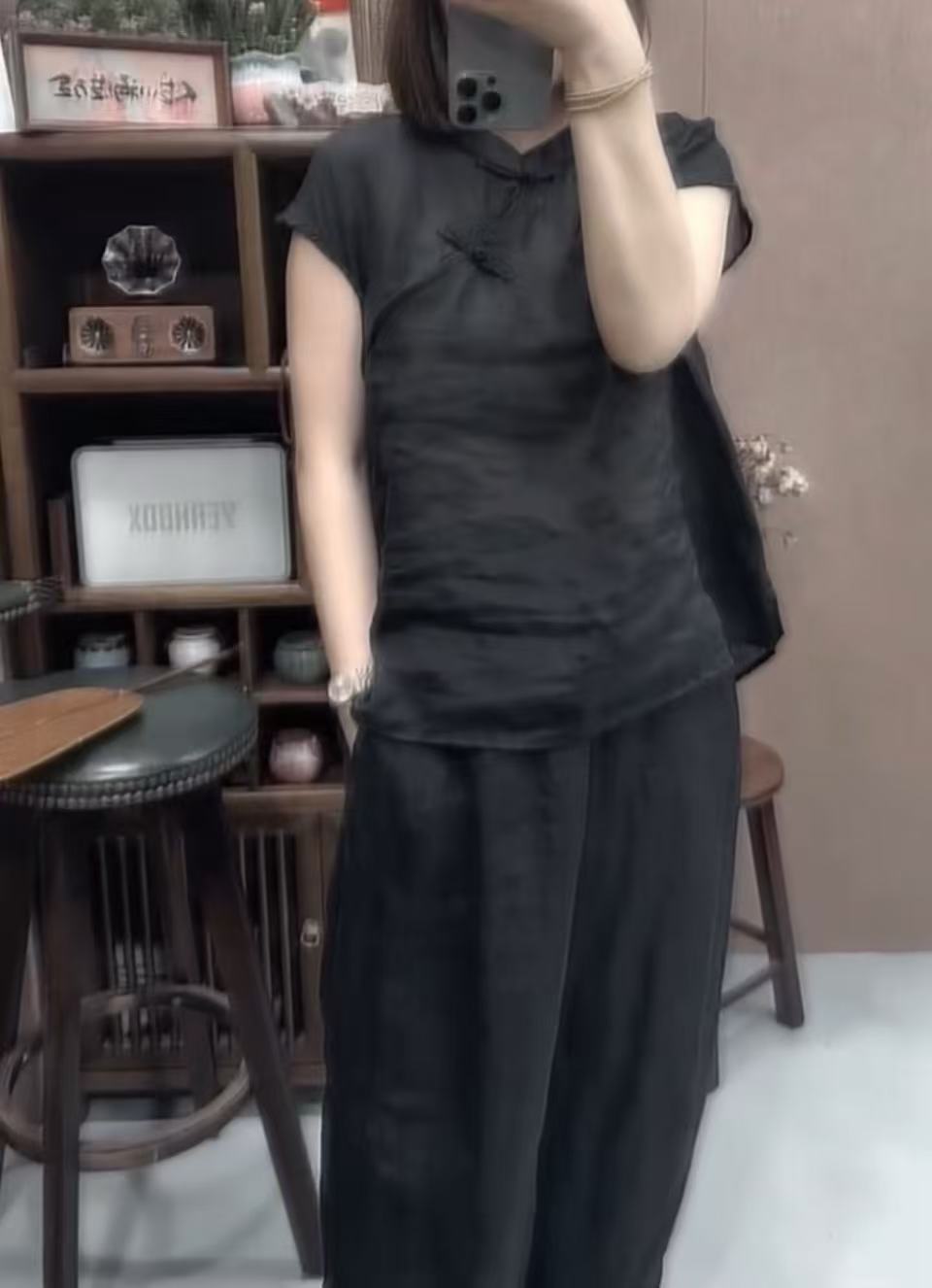 25295大愛美依緣2025夏季新款復古盤釦簡約時尚兩件套顯瘦套裝女