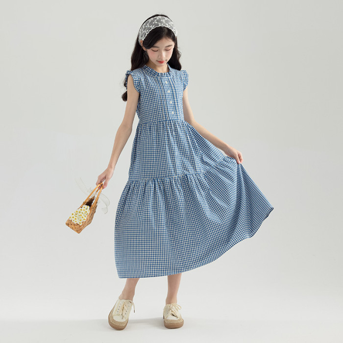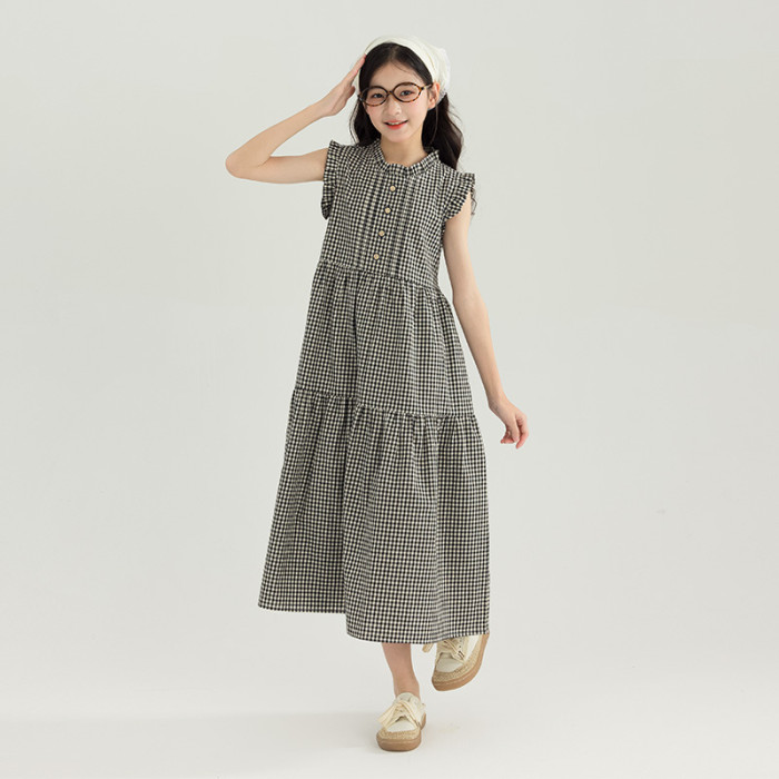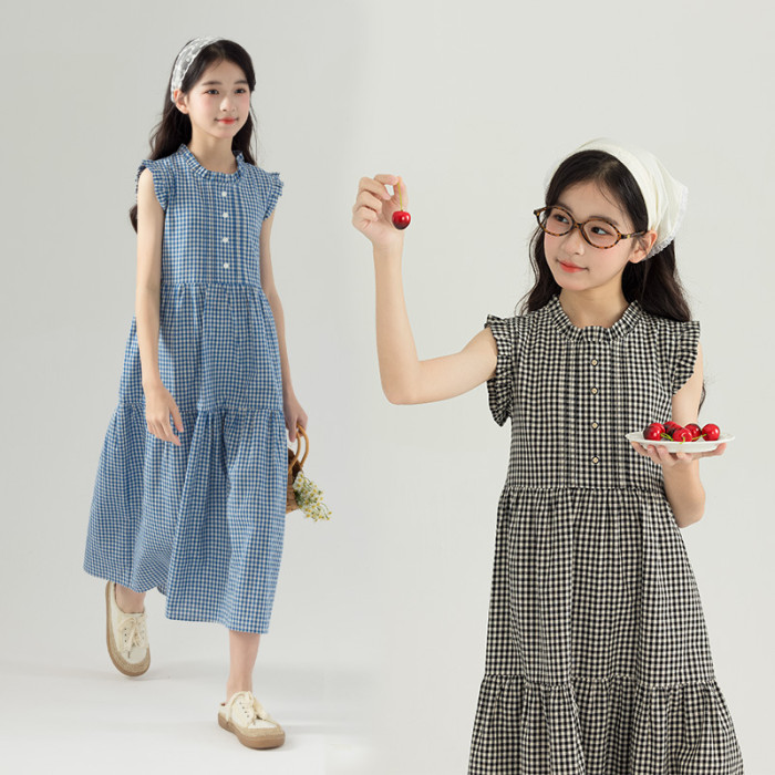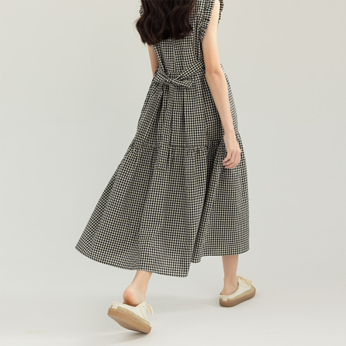 精選純棉格子布,透氣清爽,木耳花邊領跟袖口,簡約甜美,前胸加了裝飾釦,後背有裝隱形拉鍊,好穿方便,上身是寬松一點的效果,腰節有腰帶,可以隨意調節腰圍大小,胖瘦都合適,中長款設計,修身顯瘦顯高。
