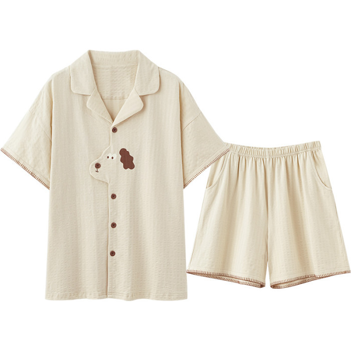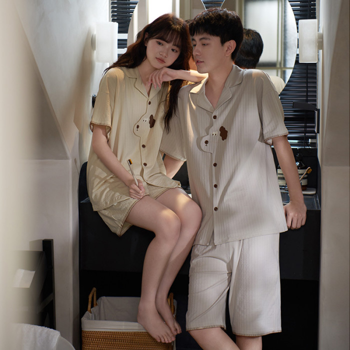 情侶睡衣女夏季新款可愛小狗涼感純棉短袖男士卡通家居服