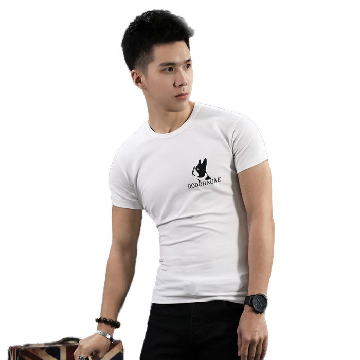 夏季緊身短袖男t恤圓領個性狗頭印花潮修身半袖健身跑步體恤汗衫