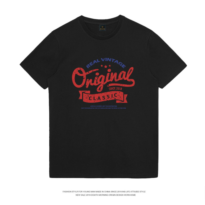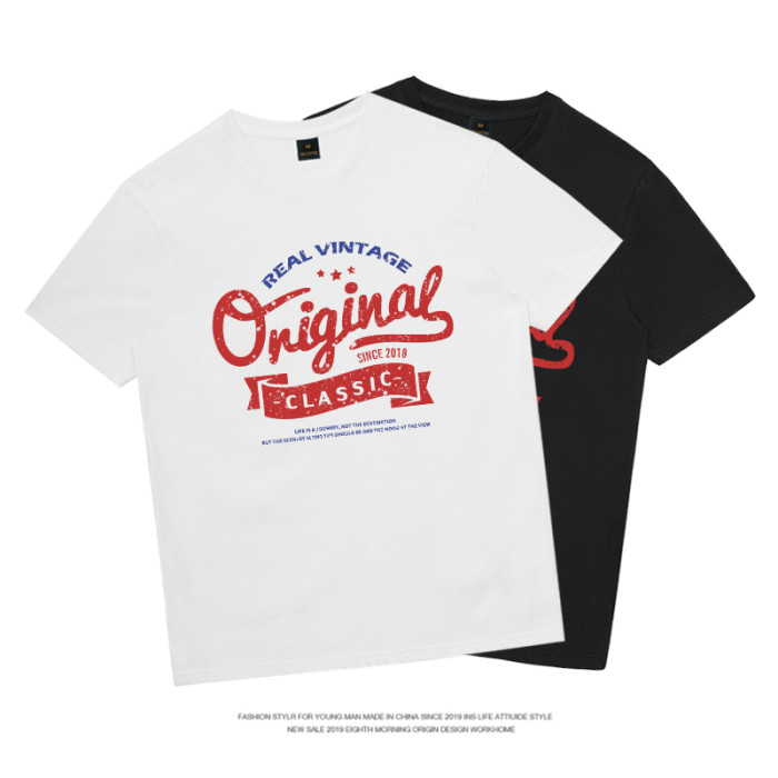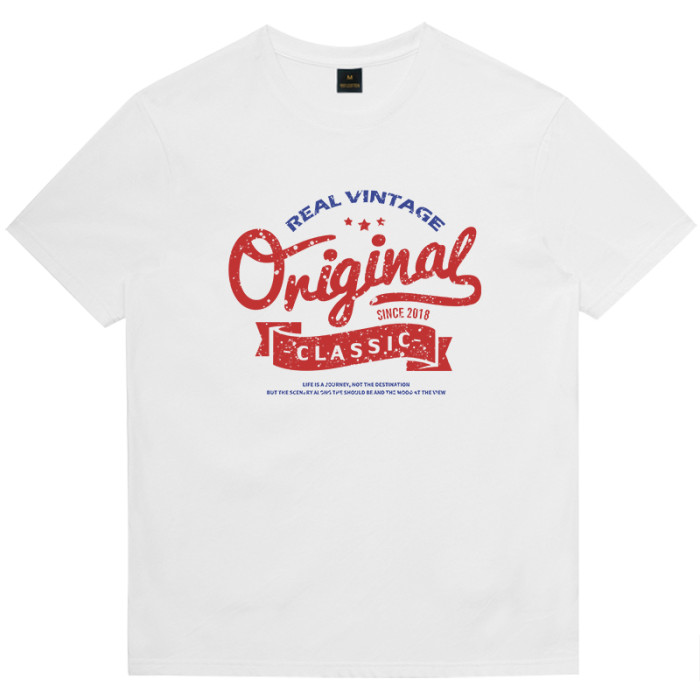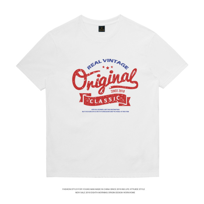 2025純棉復古印花短袖男T恤女文字半袖情侶裝 青少年寬松衣服春夏
