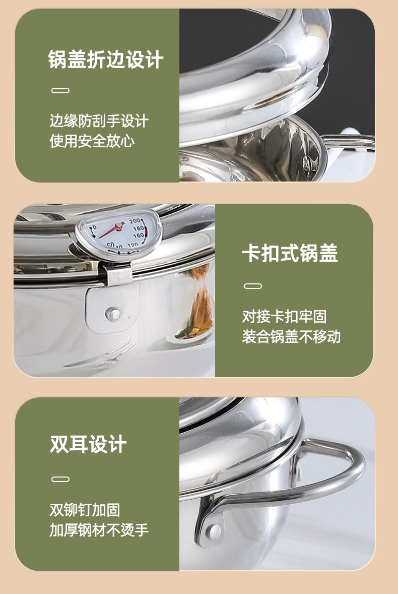 日式天婦羅加厚不鏽鋼多功能油炸鍋家用可控溫小炸鍋雙耳炸鍋