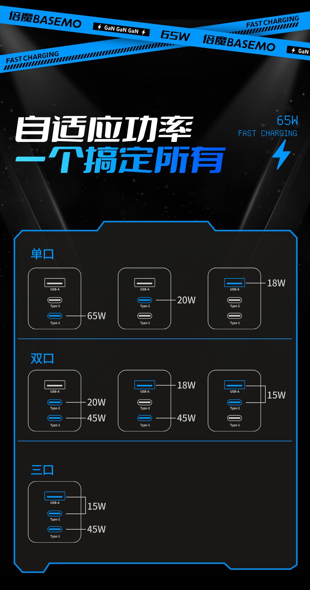 倍魔65W氮化鎵機甲充電器超級快充適用蘋果華爲安卓多口PD充電頭.