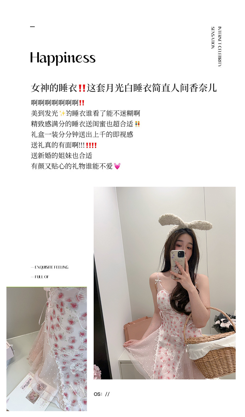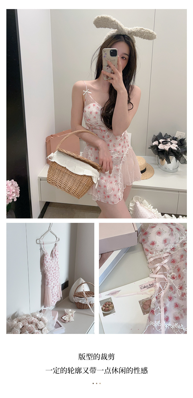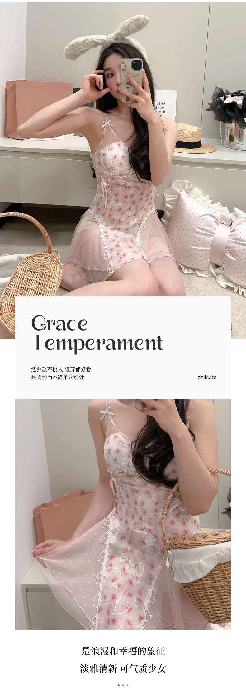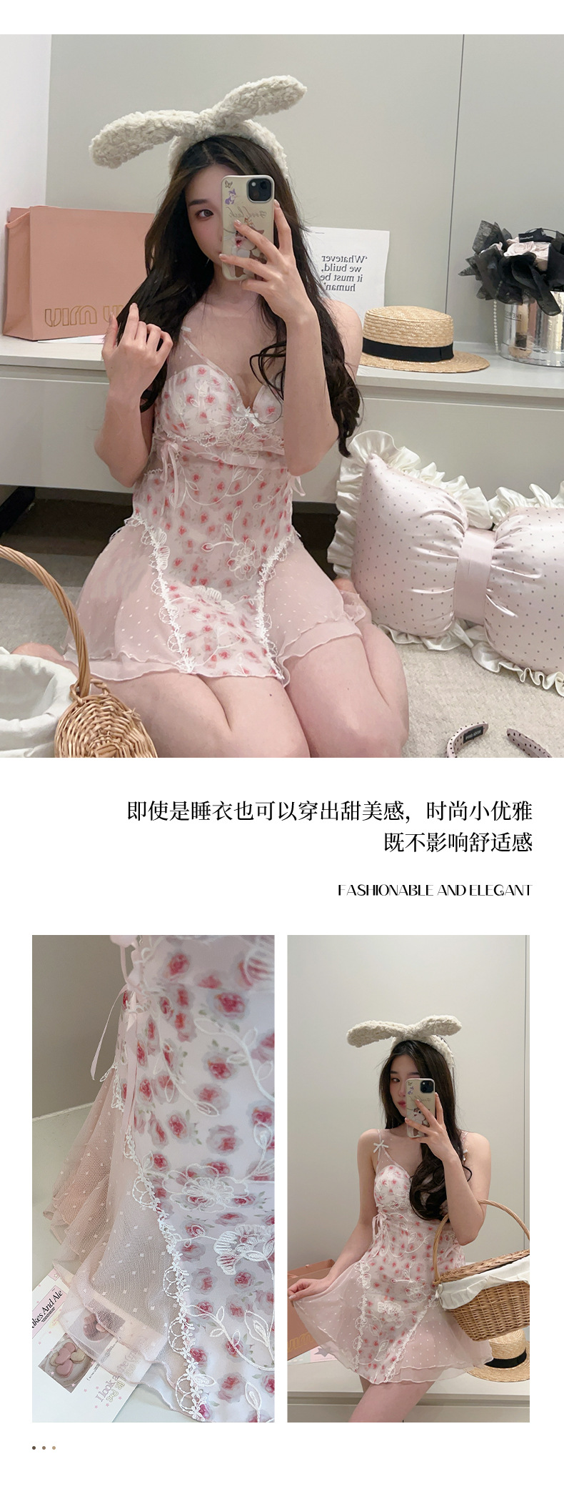 吊帶睡裙2025夏款新款玫瑰花冰雪絲可愛粉純欲睡衣誘惑性感女裙子