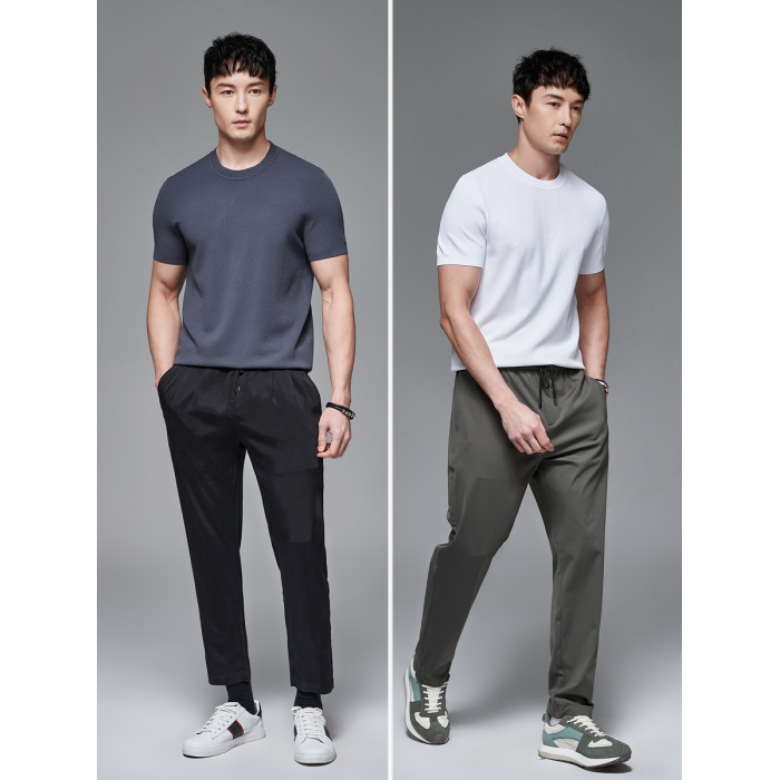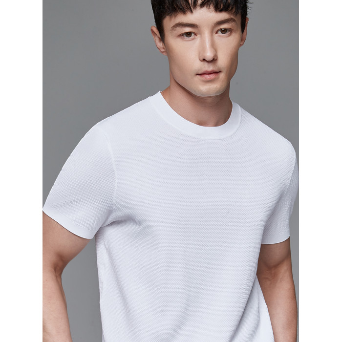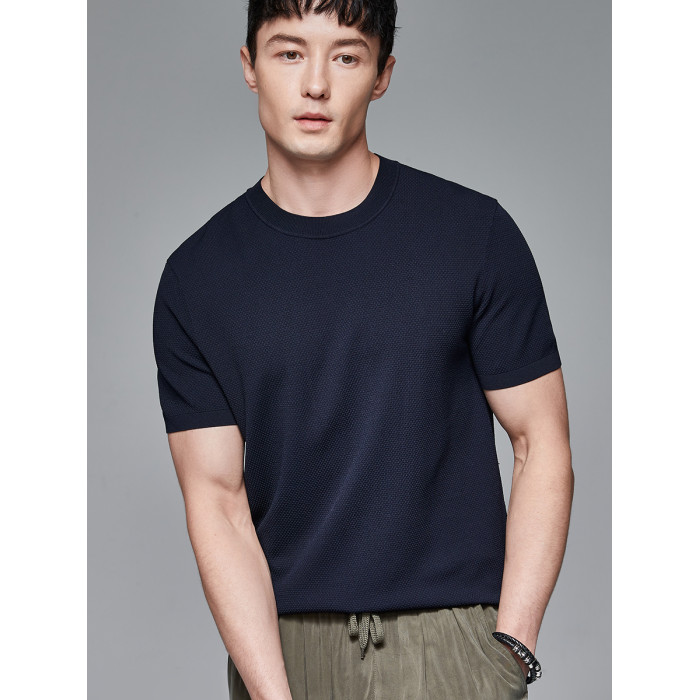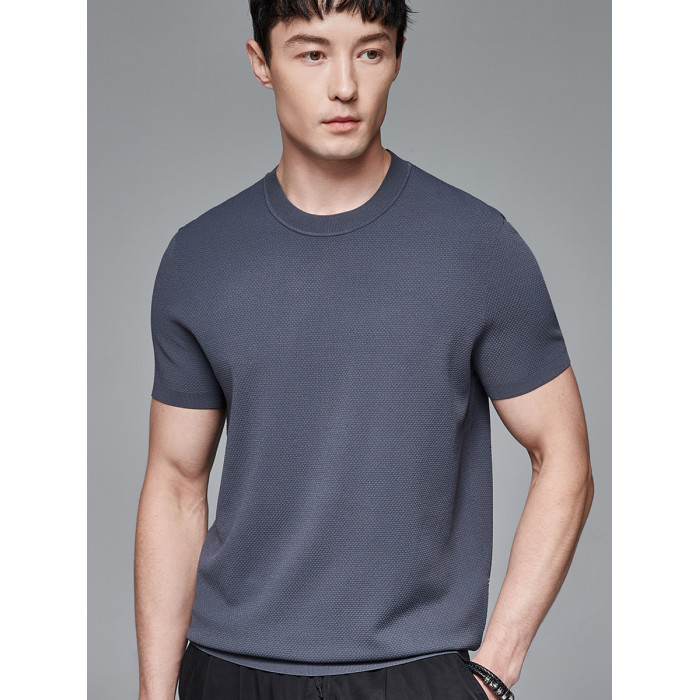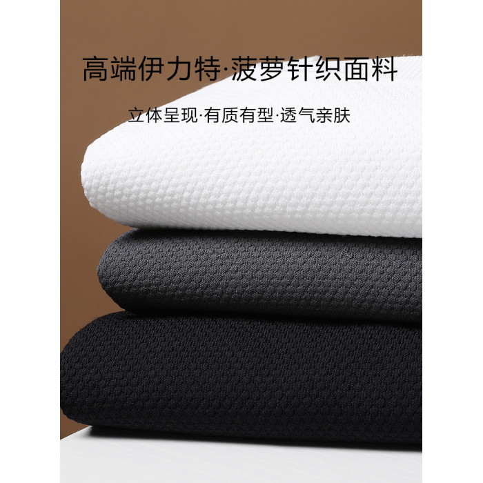 紳士簡約夏季新款男T恤 伊力特菠蘿針織純色百搭男士圓領短袖T恤