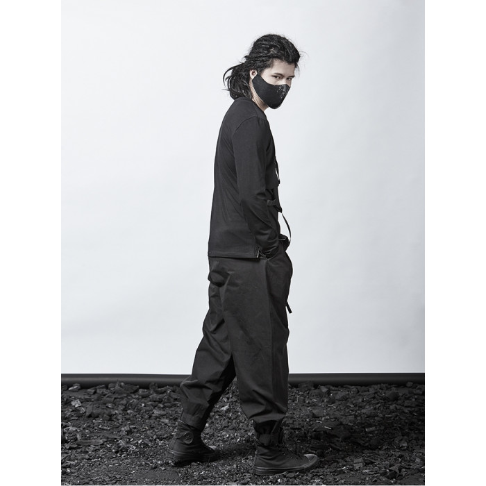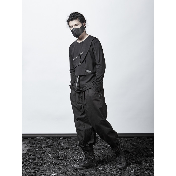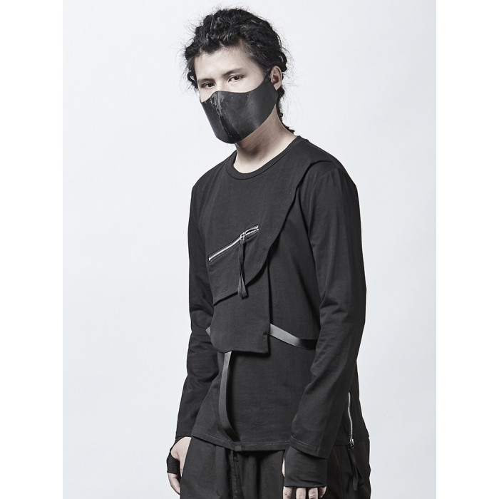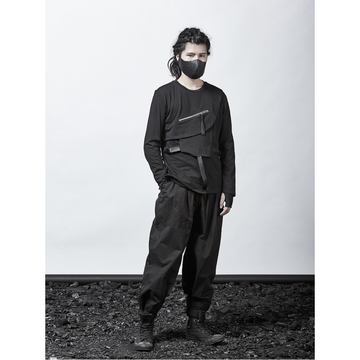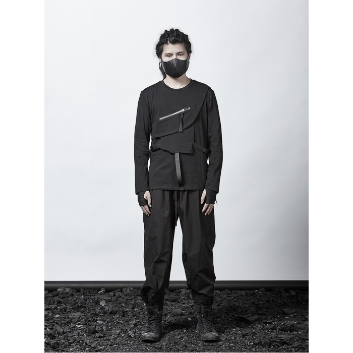 原創潮流男T恤龐克拉鍊設計時尚個性秋冬打底衫圓領黑色修身顯瘦