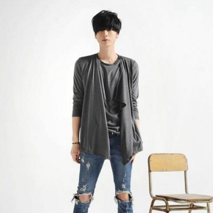 春秋韓版新款時尚潮男裝超帥另類假兩件開衫長袖T恤圓領男t恤時尚