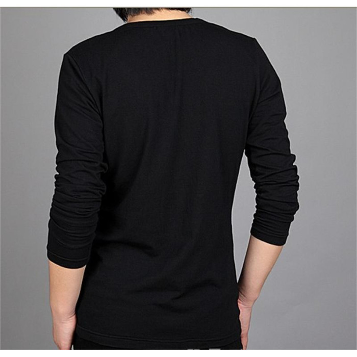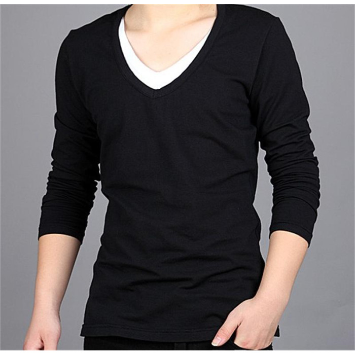 春秋季新款長袖潮男生時尚打底純棉假兩件領男t恤日常帥氣百搭T恤