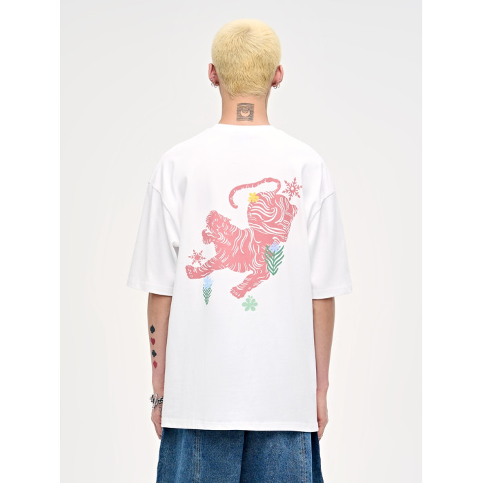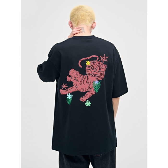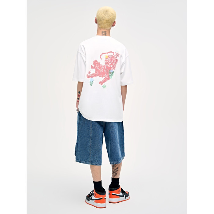 山小川潮牌老虎印花短袖男t恤夏季寬松美式重磅高街純棉男生衣服
