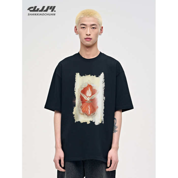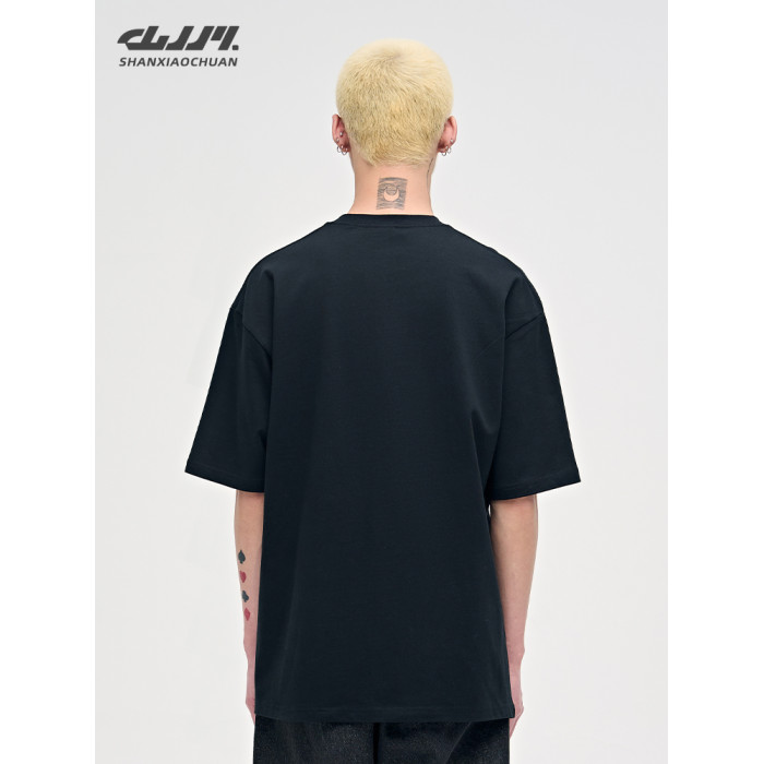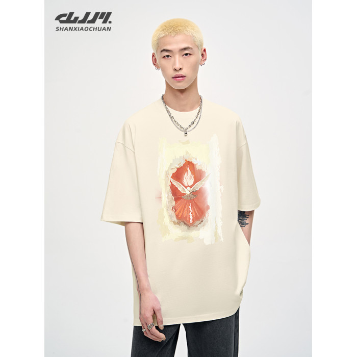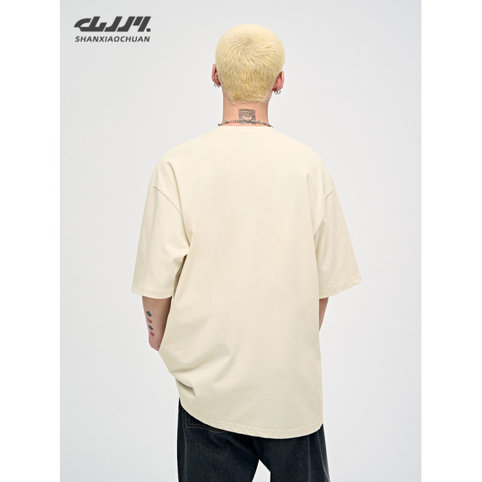 山小川潮牌夏季美式復古重磅短袖高街男t恤純棉潮流男生痞帥半袖