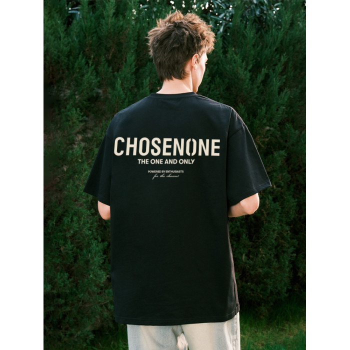 CHOSEN1CH美式基礎款短袖植絨印花短袖男t恤女夏季寬松國潮情侶裝