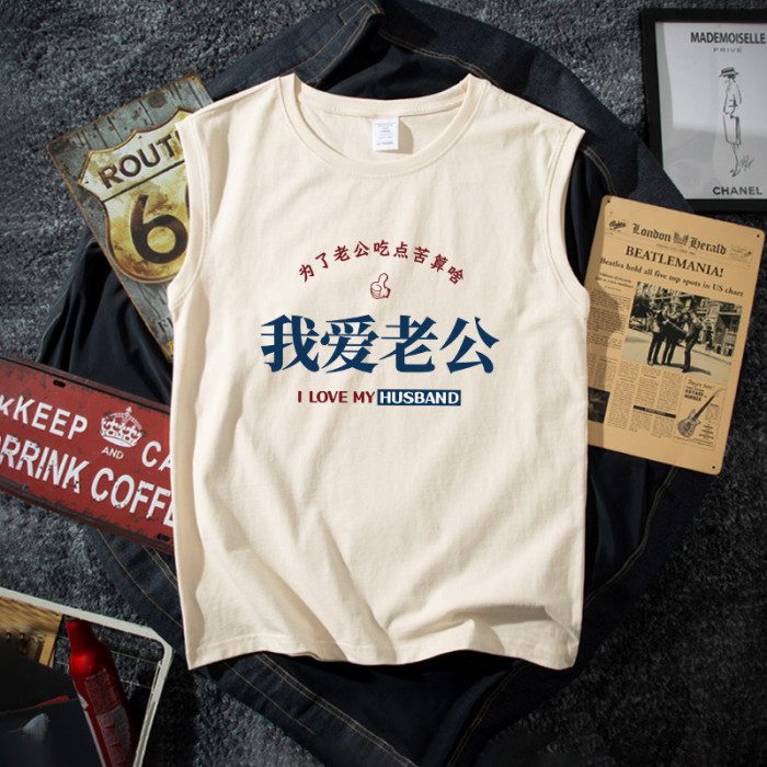 2023新款國潮趣味文字我愛老公背心男夏運動健身無袖男T恤情侶裝