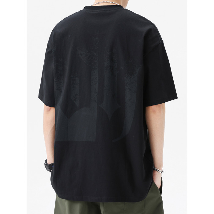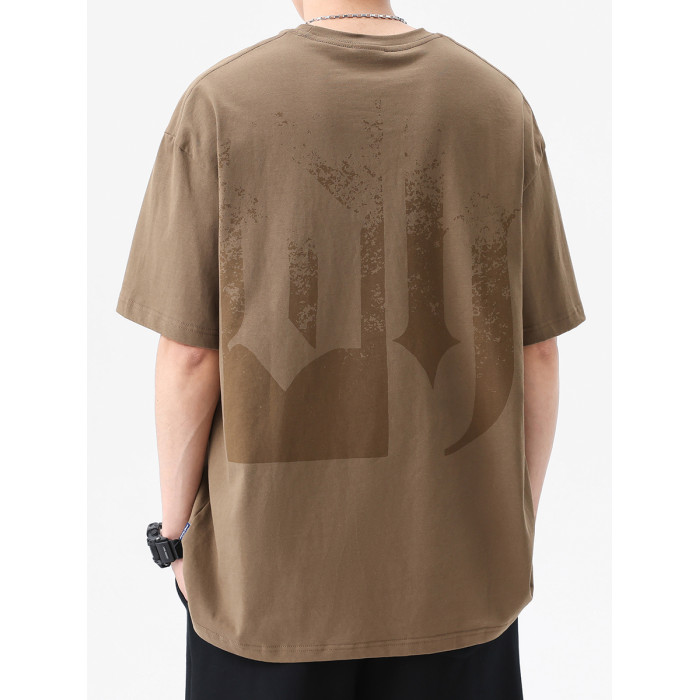 夏季短袖男T恤衫美式高街復古寬松大碼圓領半袖男士潮牌重磅半袖