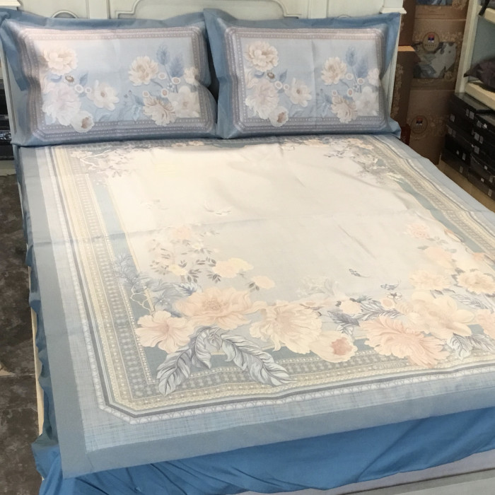 富家安娜款2025春夏新品夏天涼蓆蓆子冰絲平網印花蓆花行錦綉藍色