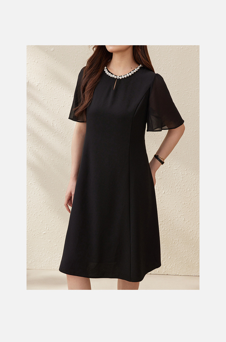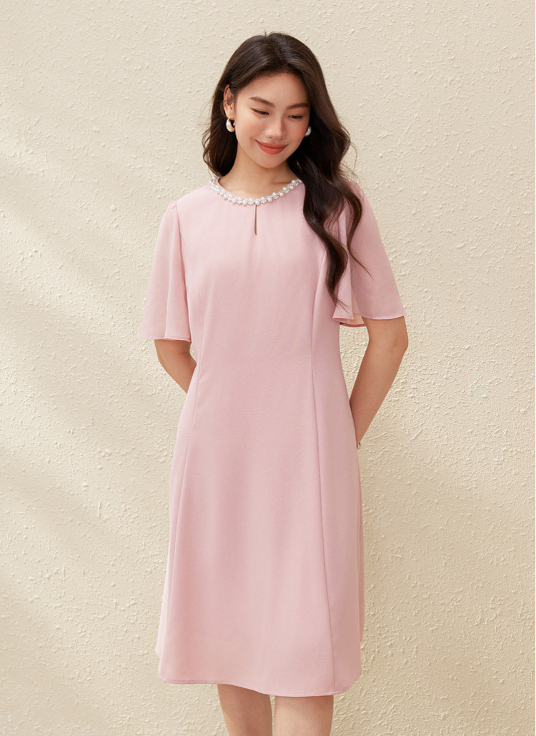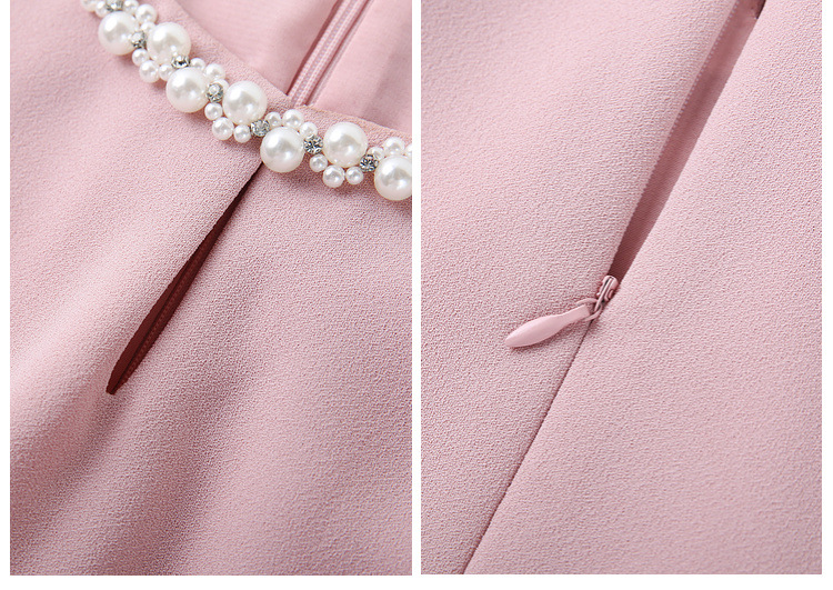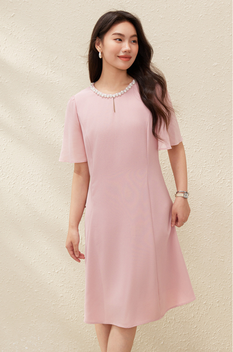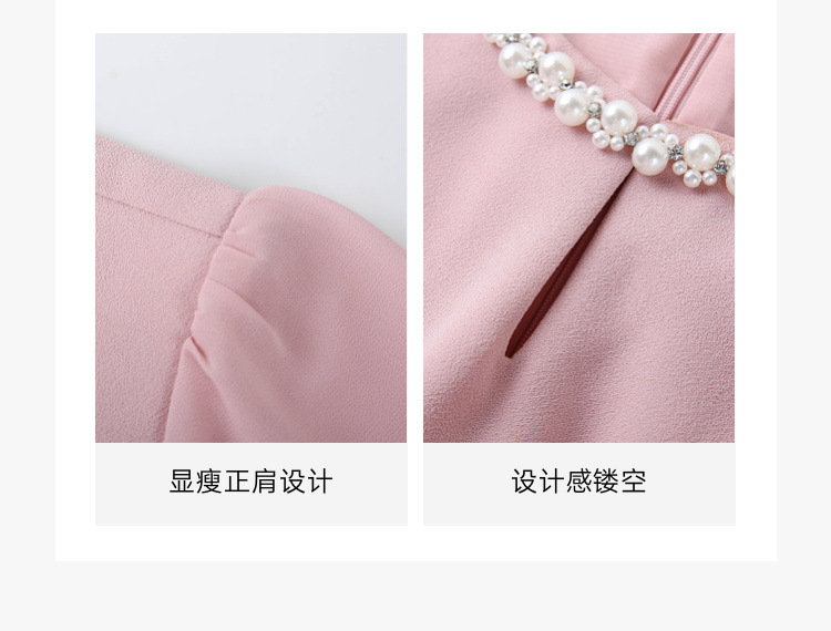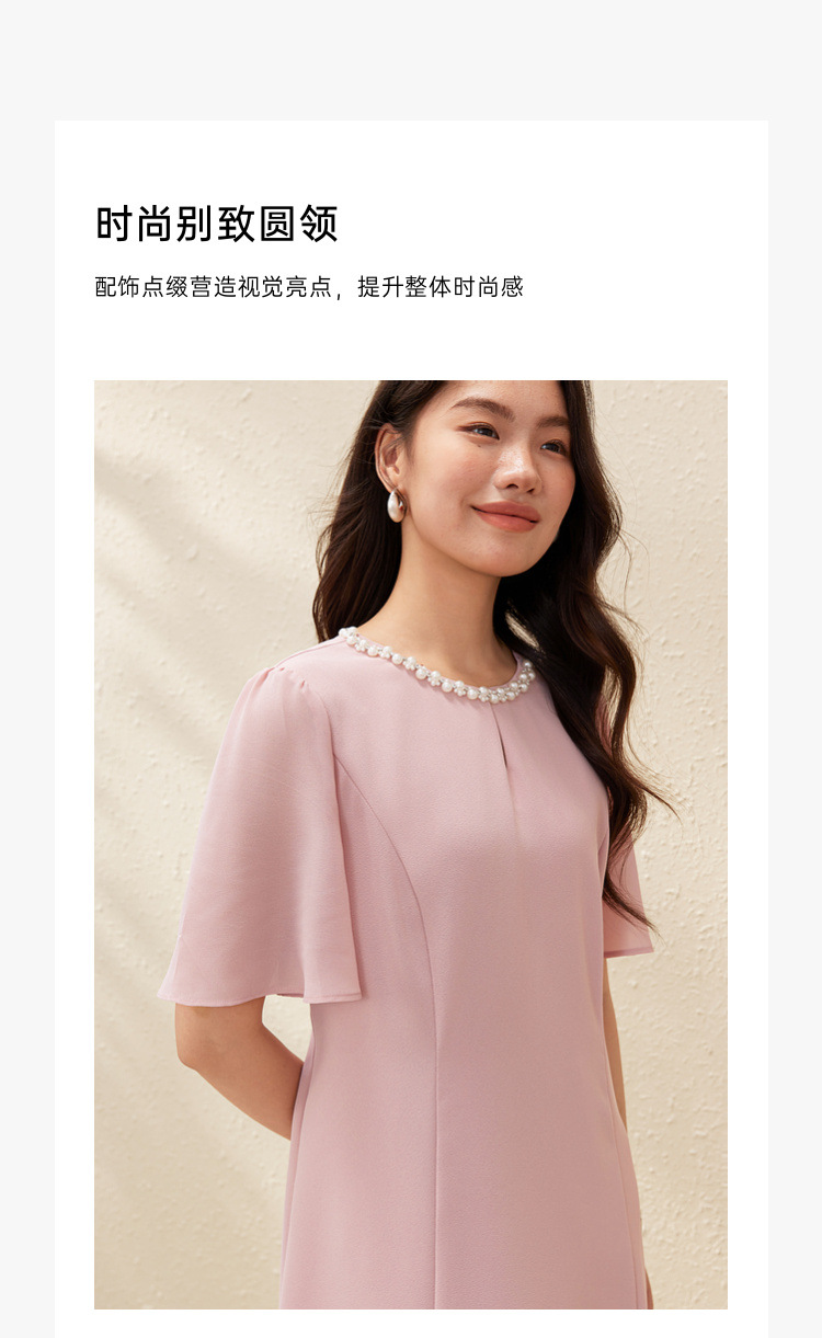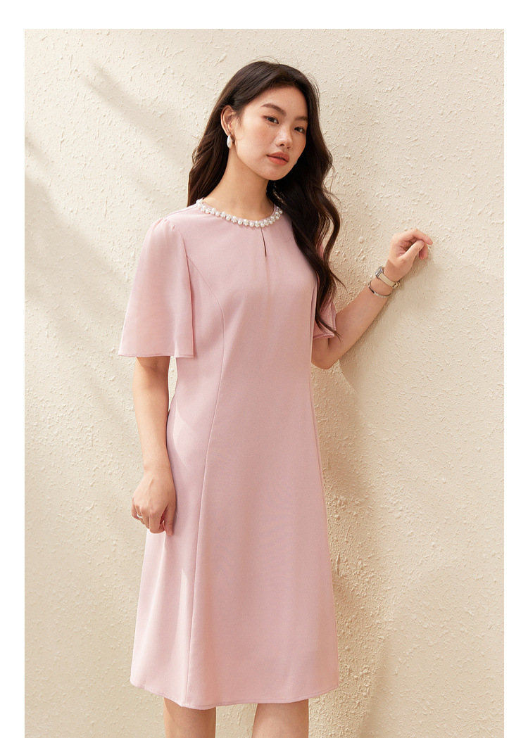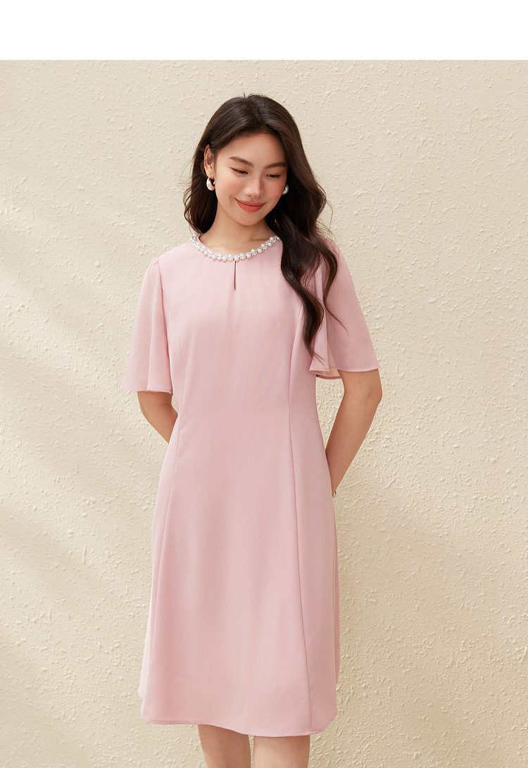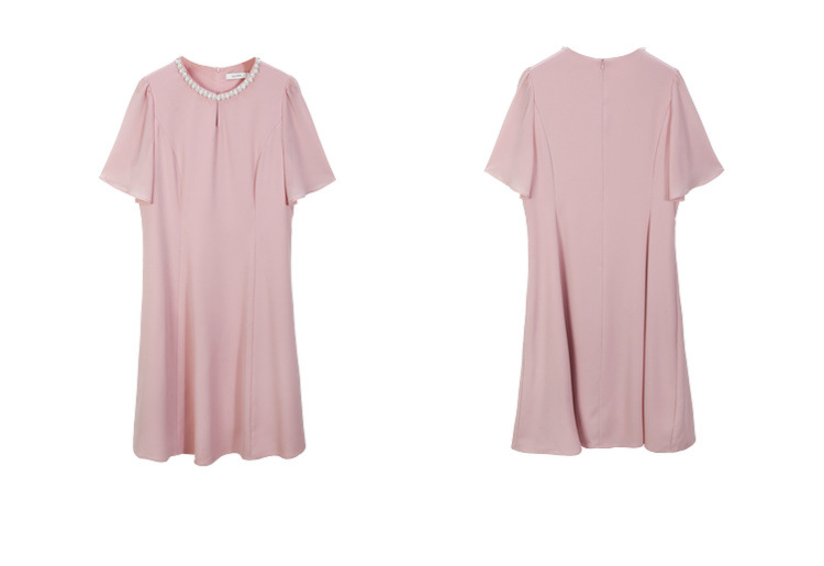 【粉黛珠影】千金風手工釘珠設計短袖連衣裙纖莉秀大碼胖mm夏新款