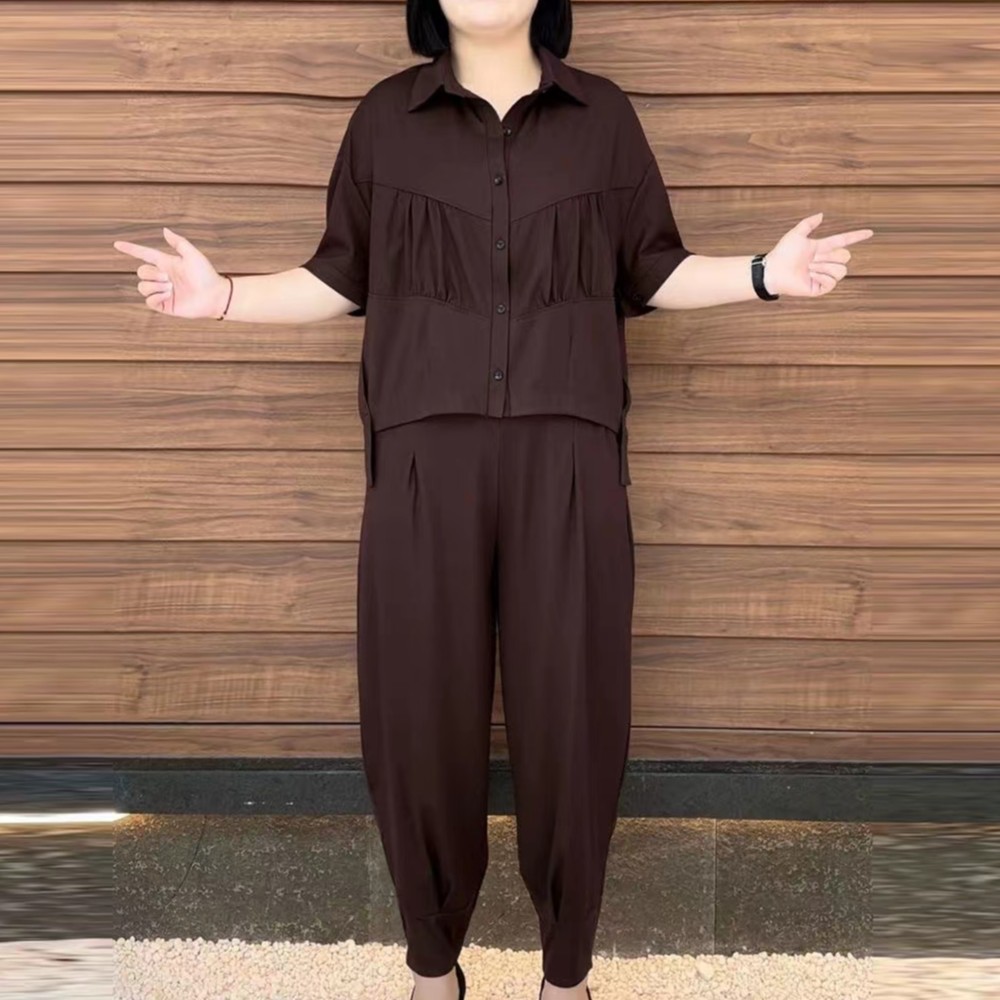 夏季新款時尚休閒寬松顯瘦洋氣女士韓版優雅兩件套裝