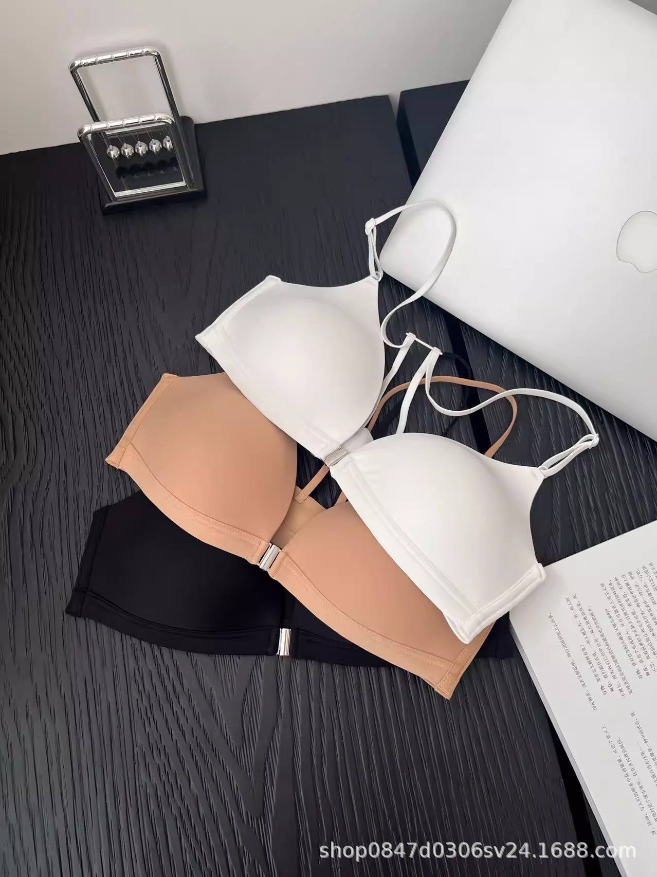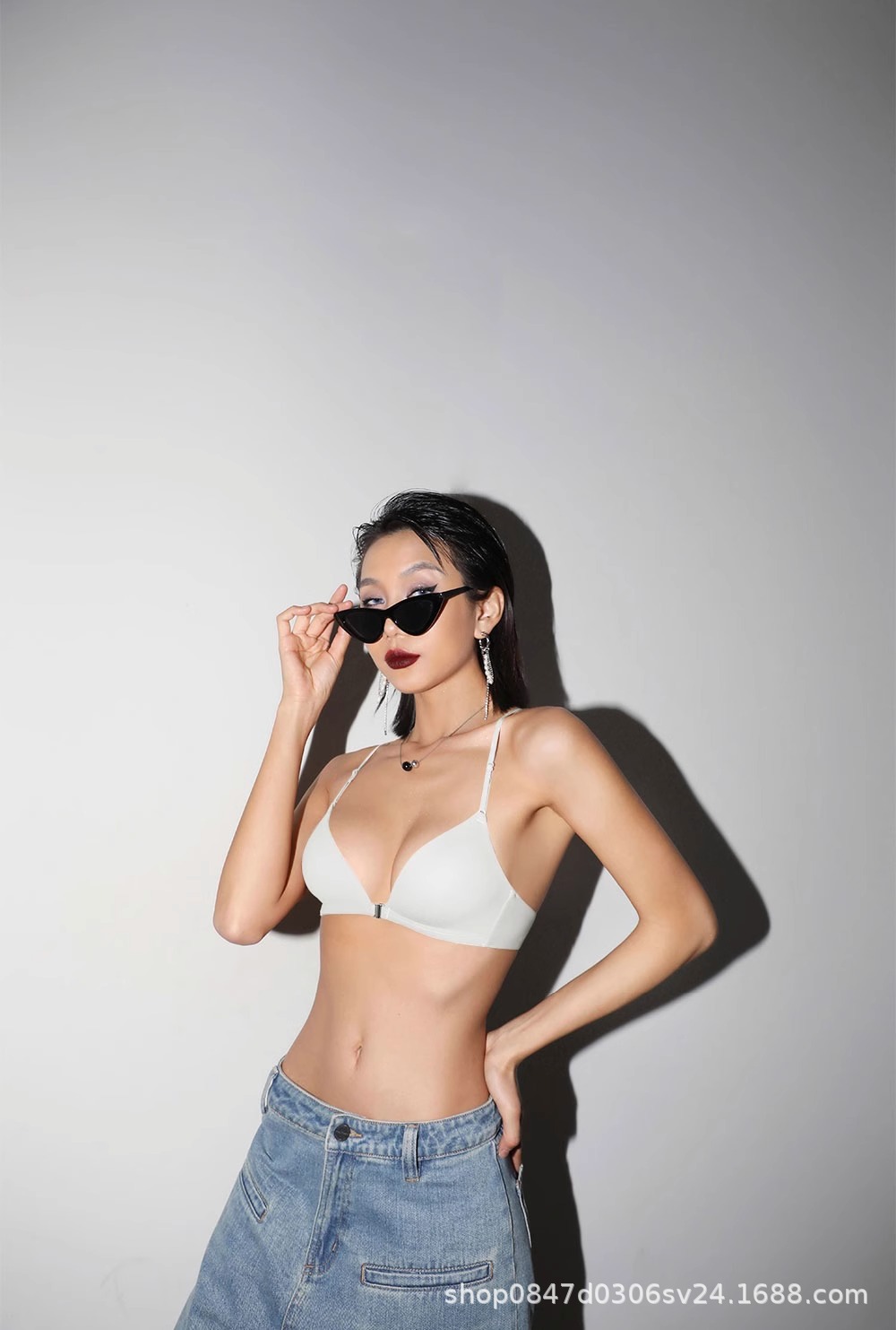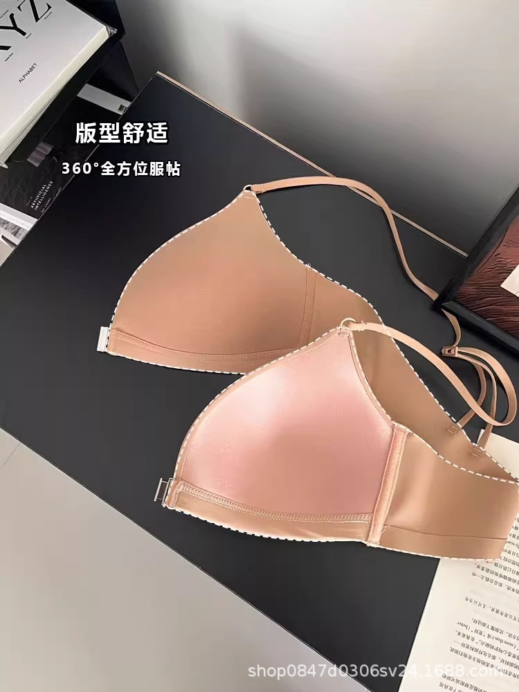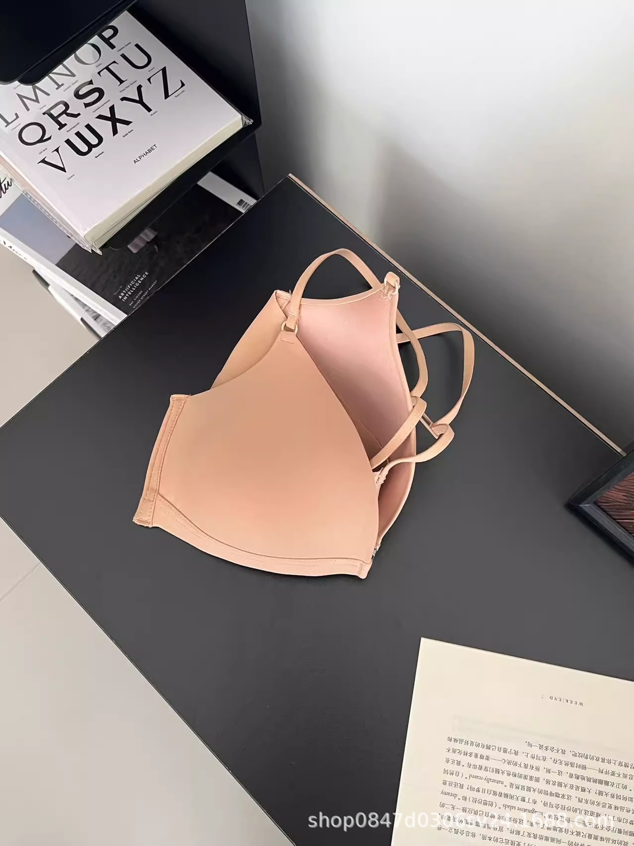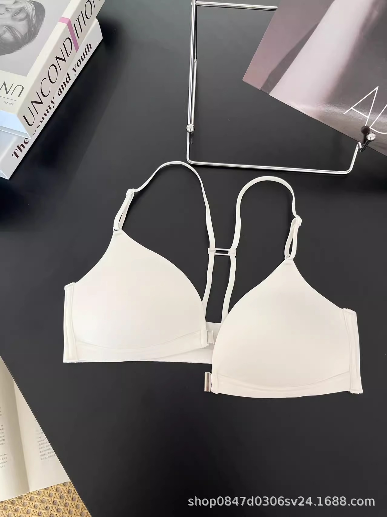原版夏季薄款美背前釦內衣女小胸聚攏無痕無鋼圈法式性感三角杯文