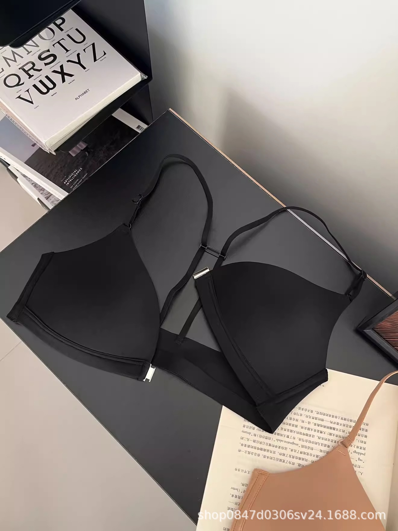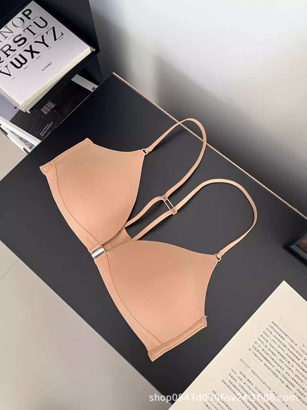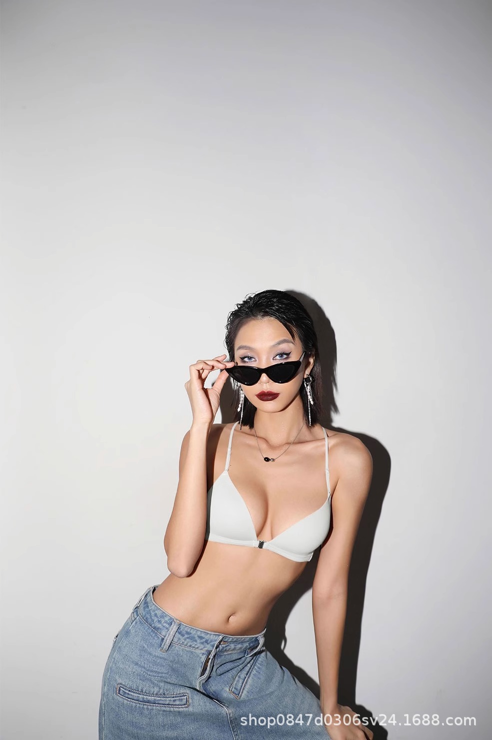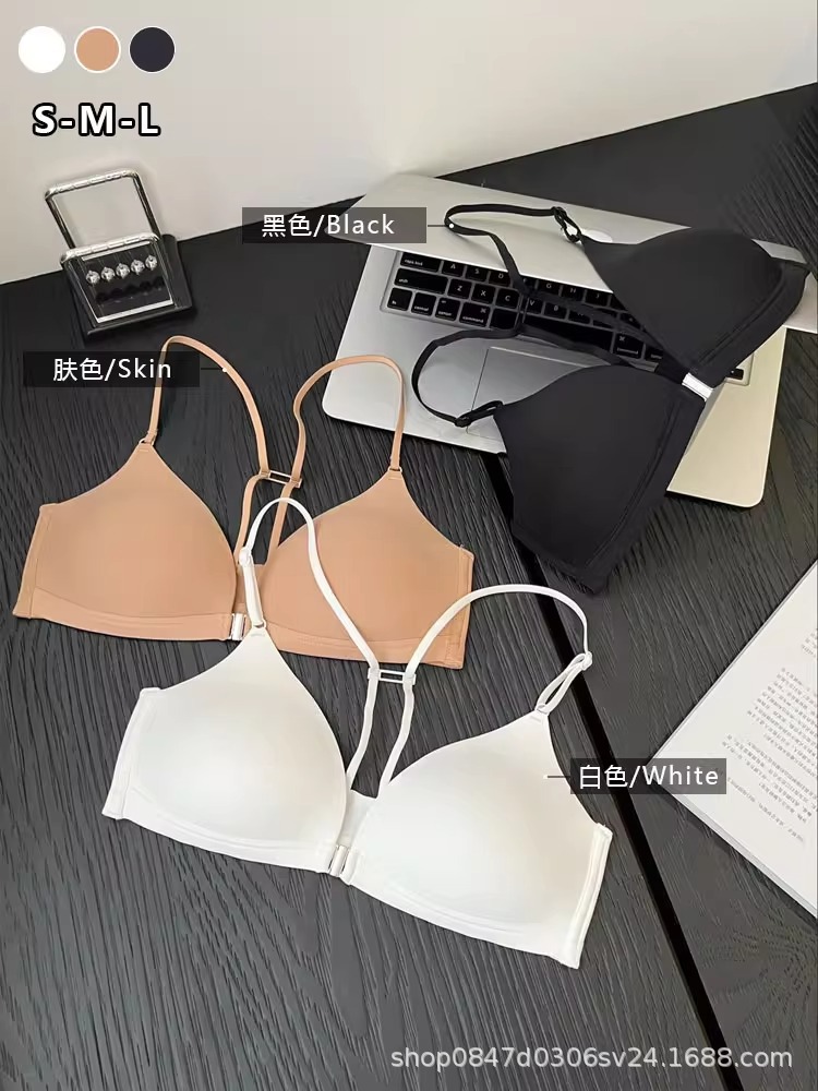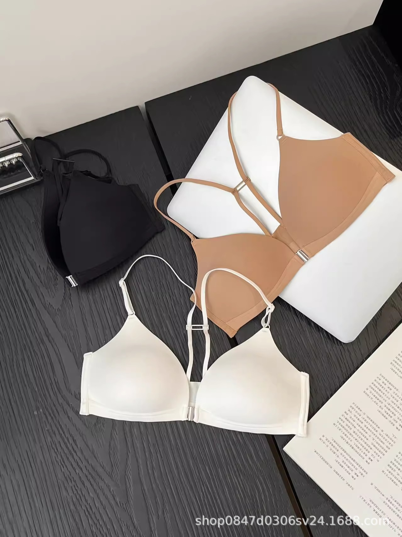原版夏季薄款美背前釦內衣女小胸聚攏無痕無鋼圈法式性感三角杯文