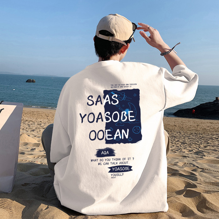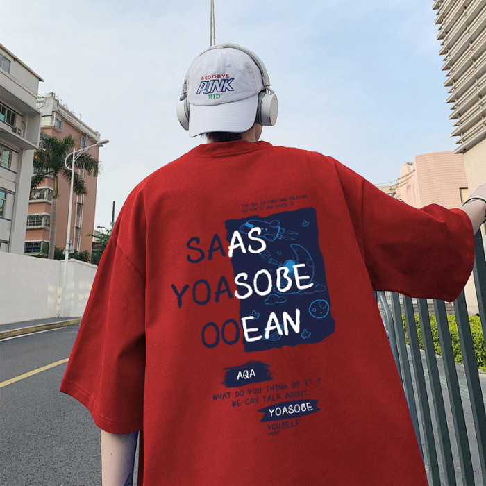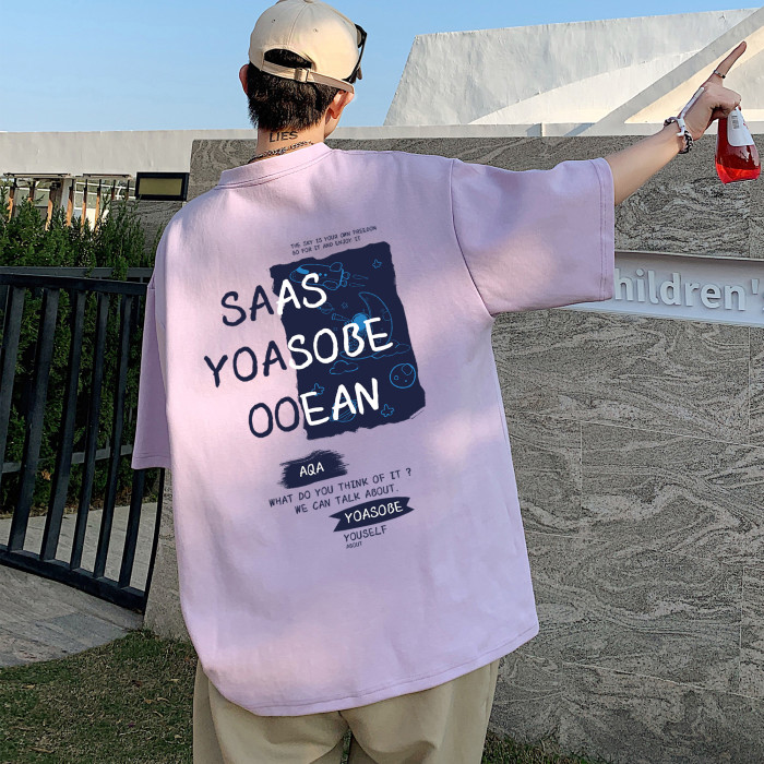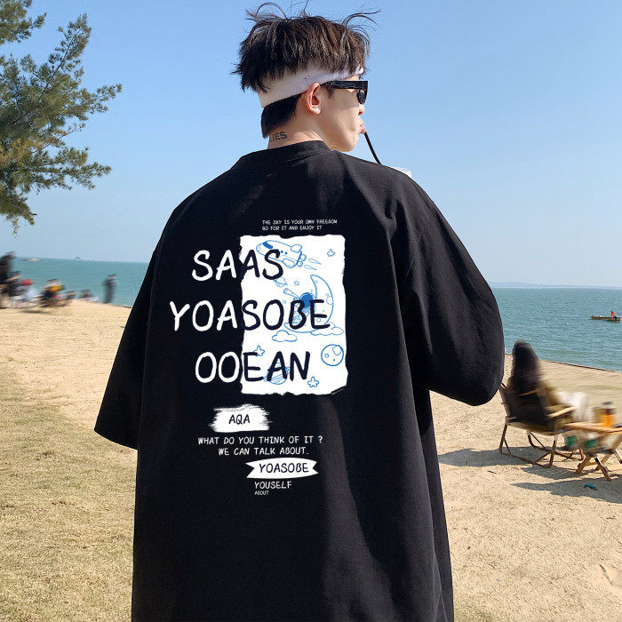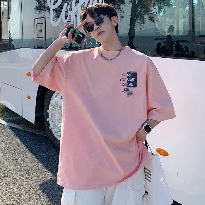 青少年男t恤夏季重磅純棉高街痞帥男生短袖潮牌寬松初高中生半袖