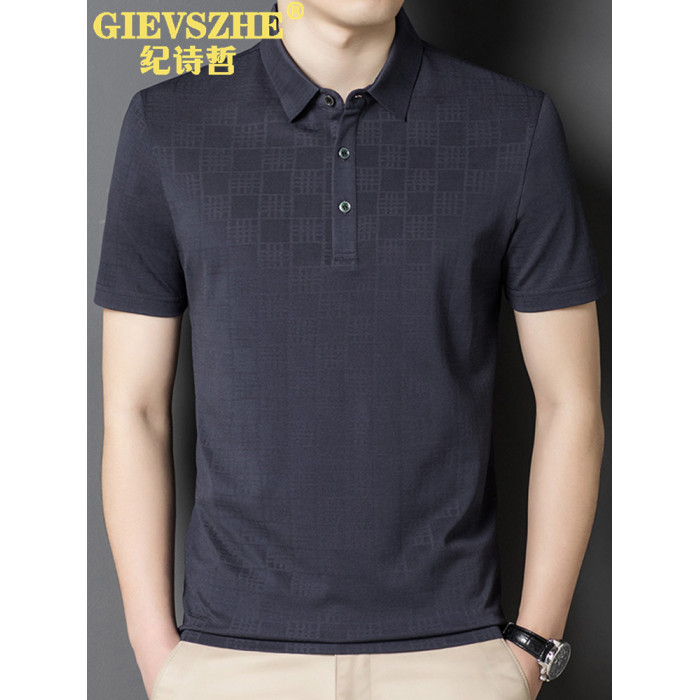 紀詩哲夏季桑蠶絲短袖男T恤2025新款中年商務休閒薄款翻領POLO衫