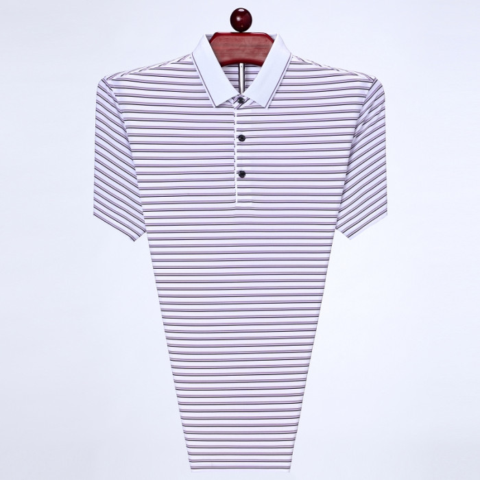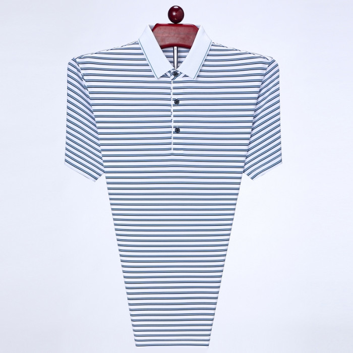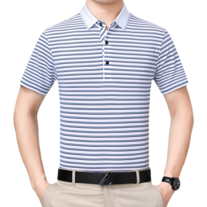 e爾多斯市産桑蠶絲短袖男T恤中青老年條紋半袖高檔Polo衫簡約男