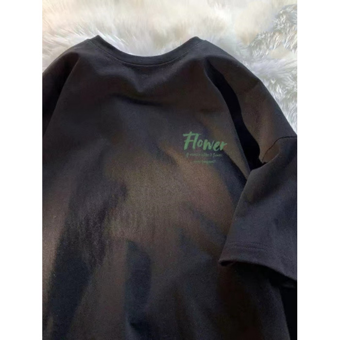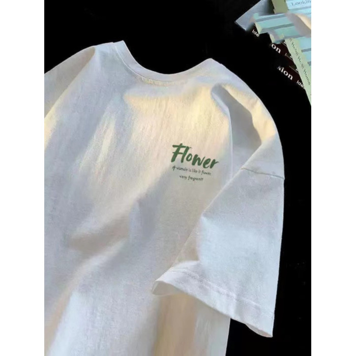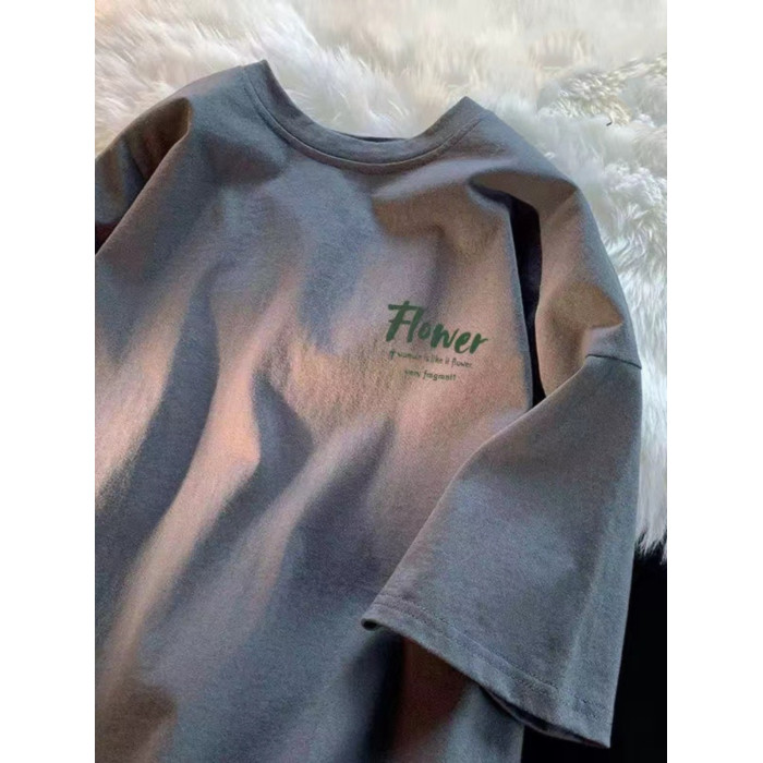 100%重磅純棉大碼男t恤簡約字母短袖夏季寬松美式正肩港風ins新款