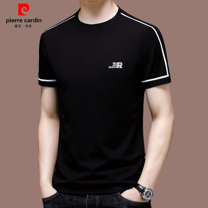 皮爾卡丹新款桑蠶絲短袖T恤男夏季上衣男裝潮流冰絲休閒男款體恤