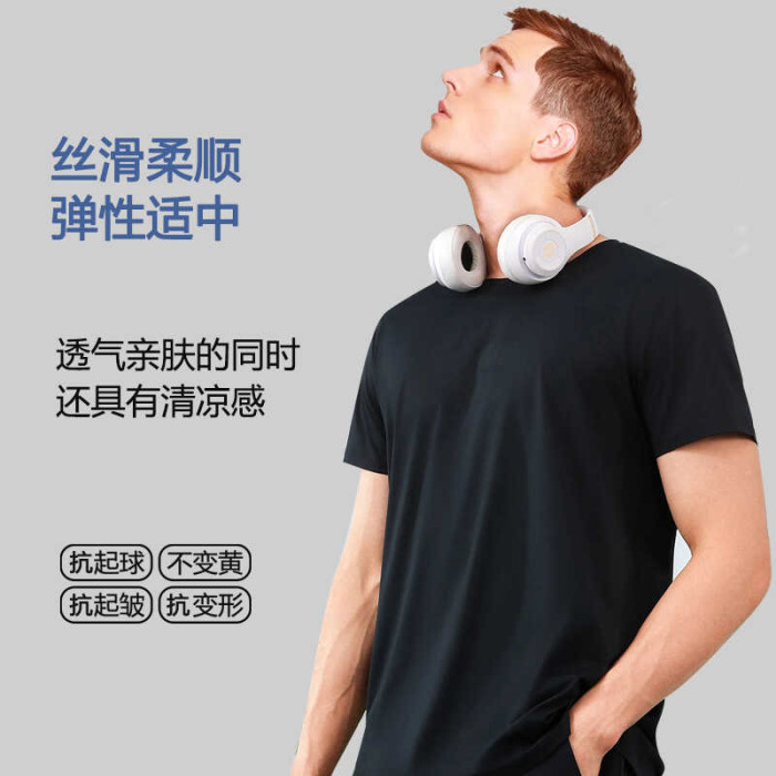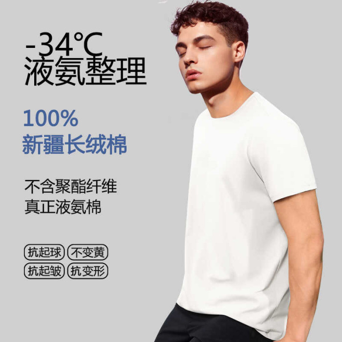 HBZ100支液氨男T恤百分百棉白色短袖T恤男圓領絲光全棉男士打底衫