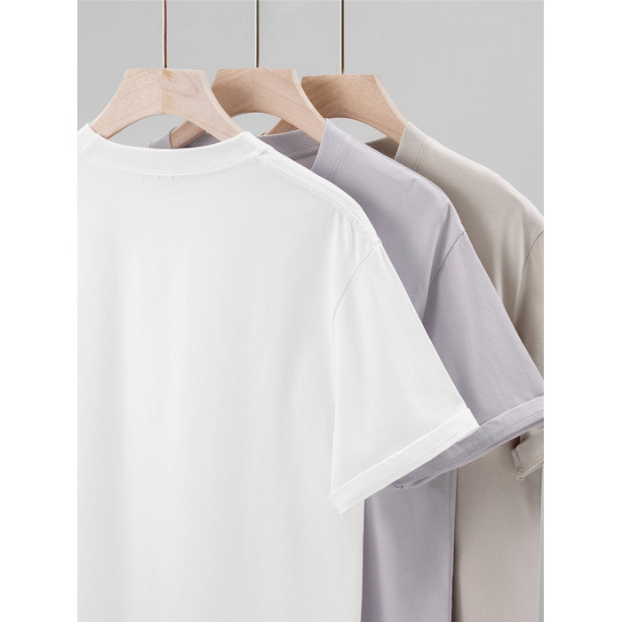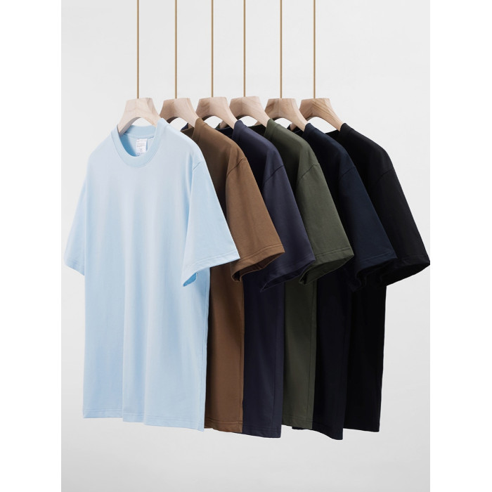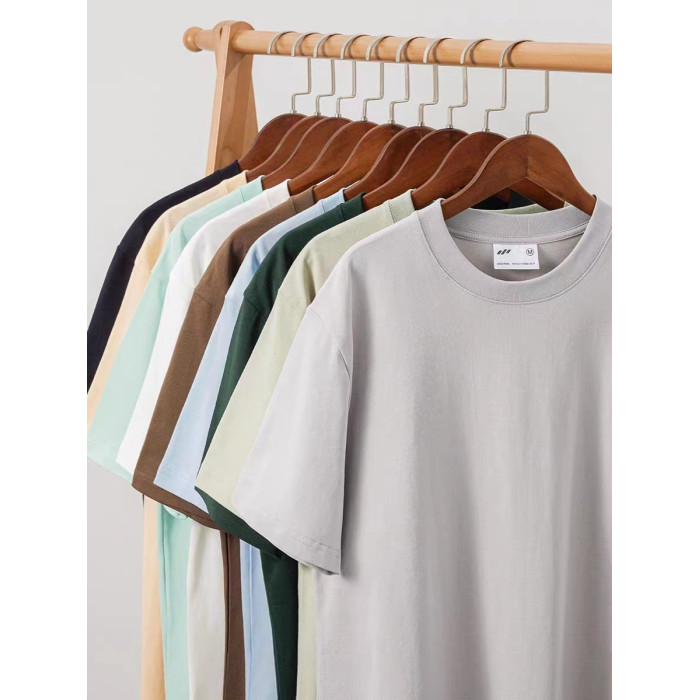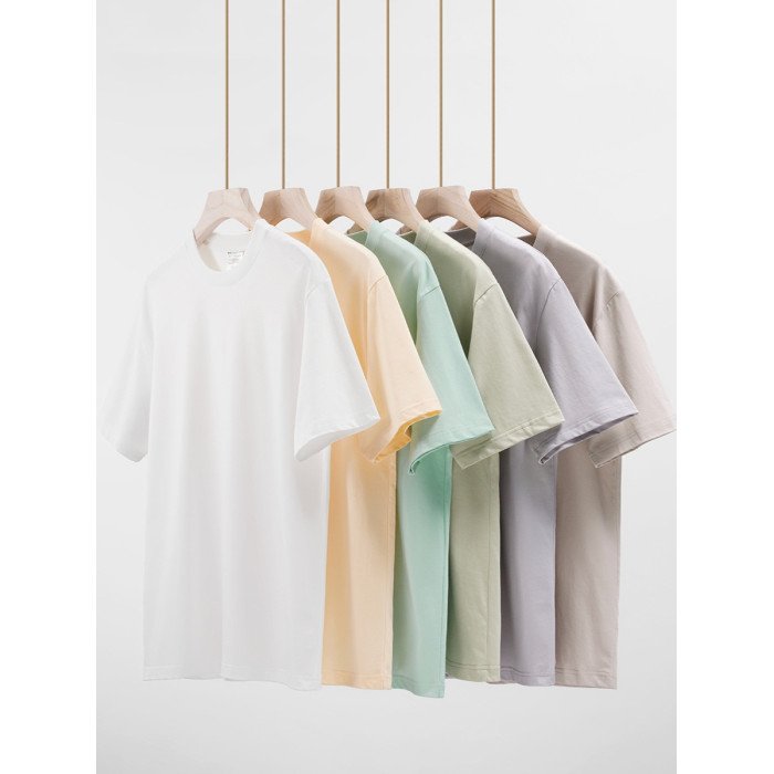 240克重磅40支精梳棉純棉雙紗短袖男T恤寬松純色落肩圓領情侶款